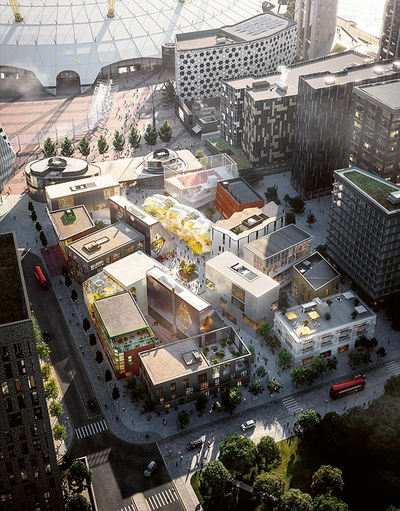 Cuando quedan varios meses para su inauguración, el Design District de Londres va tomando forma. Se trata de un conglomerado de dieciséis edificios-emblema a cargo de un conjunto disímil de arquitectos entre los que abundan las firmas británicas —6a Architects, Adam Khan Architects o Architecture 00, entre otras— pero entre las que cabe encontrar también dos oficinas españolas, Barozzi Veiga y SelgasCano, ambas volcadas en consolidar su notable proyección internacional. Situado en el corazón de un nuevo desarrollo inmobiliario en la zona de Greenwich, junto a la Millennium Dome de Rogers Stirk Harbour + Partners, el Design District ocupa una hectárea destinada a espacios y talleres de los que darán cuenta empresas creativas e innovadoras. La características más singular de la intervención es que, por mor de la originalidad, cada estudio invitado ha trabajado sin conocer el resto de proyectos, lo cual ha traído aparejada una improbable y abigarrada mezcla de tipos, materiales y estilos.