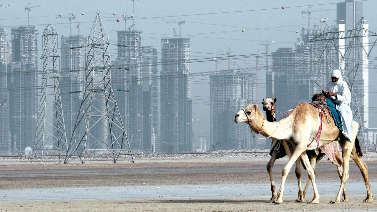 Un poco más lejos se aprecian tres grandes grupos de islas en forma de palmeras, sembradas de resorts en altura, parques de atracciones y miles de mansiones como palafitos construidas sobre el agua. Las islas (conocidas como ‘The Palms’) están conectadas por una vía elevada con un frente marítimo tipo Miami, abarrotado de grandes hoteles, torres residenciales y marinas llenas de yates amarrados... [+]