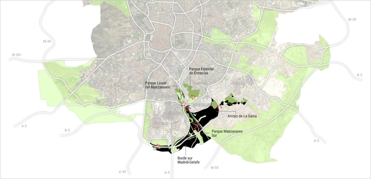 Madrid inicia la transformación de su perímetro urbano con la construcción del Bosque Metropolitano, una corona forestal que conectará las áreas naturales protegidas de El Pardo, al norte, con los cursos bajos del Manzanares y el Jarama, al sureste. El proyecto abarca 14.200 hectáreas y prevé la plantación de hasta 450.000 árboles de especies autóctonas. Su objetivo es mejorar la calidad del aire y disminuir el efecto 'isla de calor'.
