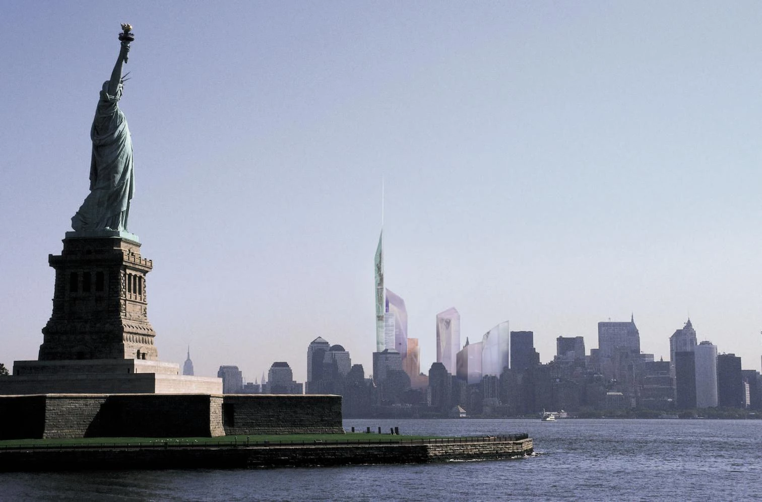 Inspirada según su autor en la Estatua de la Libertad, la torre del mismo nombre se eleva con una aguja ajardinada para alcanzar los 1.776 pies de altura, fecha de la Declaración de Independencia Americana.