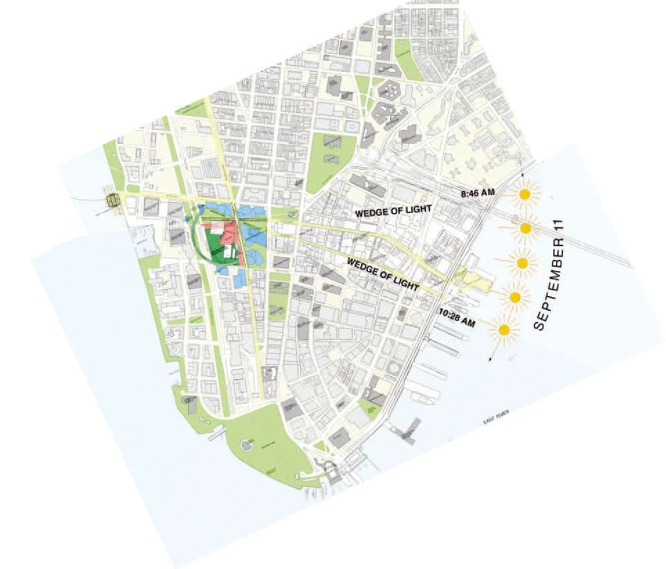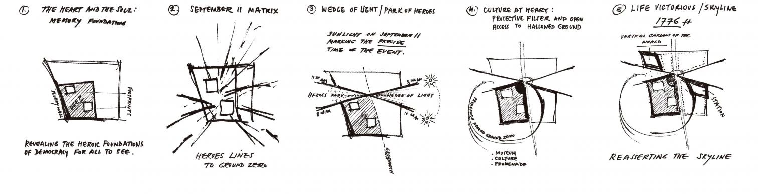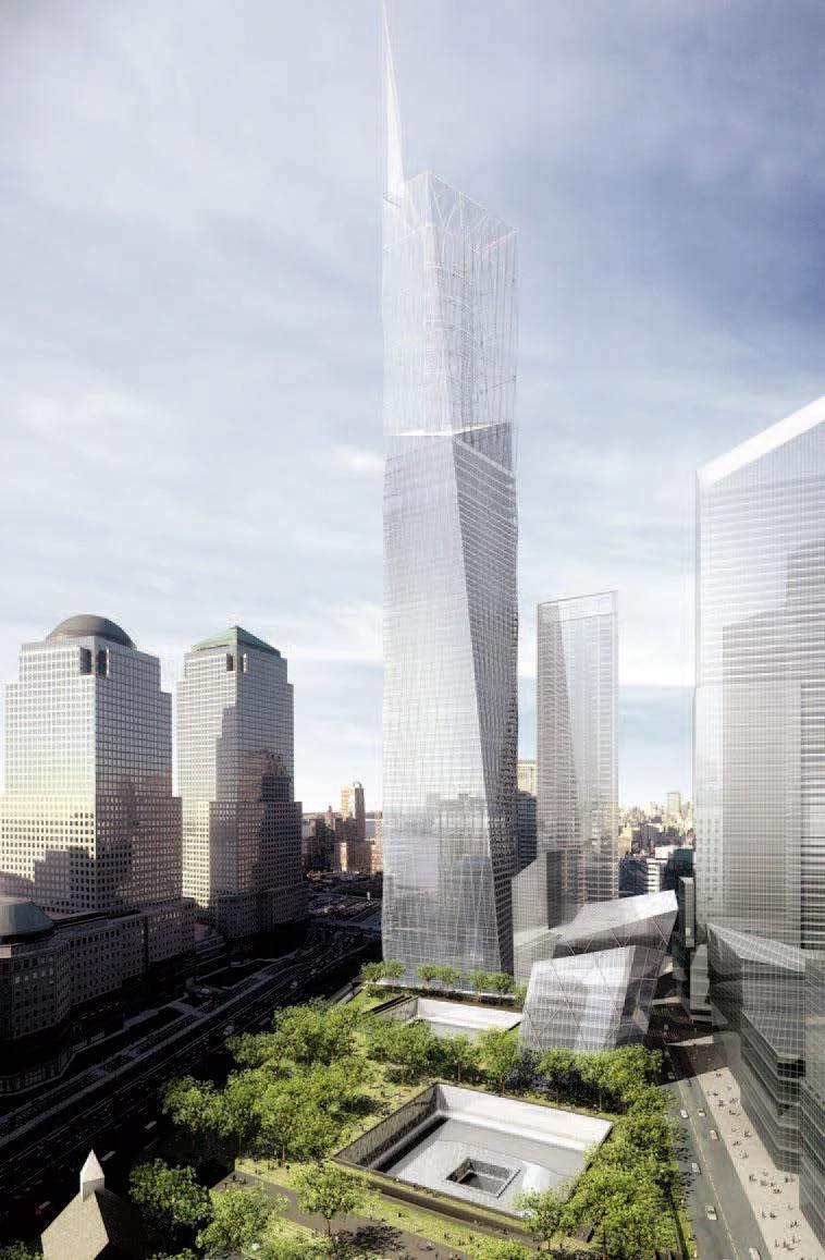 Pero Nueva York bien vale una misa, y el comportamiento patriotero de Libeskind en un momento en que el país calentaba motores para la invasión de Irak sólo escandalizará a los que no hayan visto a otros arquitectos consiguiendo encargos tras proclamar su devoción incombustible por Juana de Arco, el Manchester United o el sushi. Más grave era la inconsistencia y superficialidad del proyecto, que si alcanzaba cotas emocionantes de memorial elegíaco en la plaza hundida a más de 20 metros de profundidad junto al descarnado muro de contención, resultaba esquemático en el grupo de torres facetadas que se incorporaban al skyline de Manhattan, y caprichosamente decorativo en las fachadas surcadas por una maraña de diagonales entre las pomposamente denominadas Cuña de Luz (definida por la posición del sol entre los dos impactos del 11-S) y Parque de los Héroes (en homenaje a los bomberos). Por lo demás, ya las primeras revisiones habían reducido la profundidad de la plaza a 9 metros para permitir el desarrollo de la estación subterránea, disminuyendo forzosamente el dramatismo de la escala inicial, y habían eliminado los jardines de la gran aguja que evoca el brazo de la Estatua de la Libertad, menoscabando también el élan utópico y lírico del proyecto.