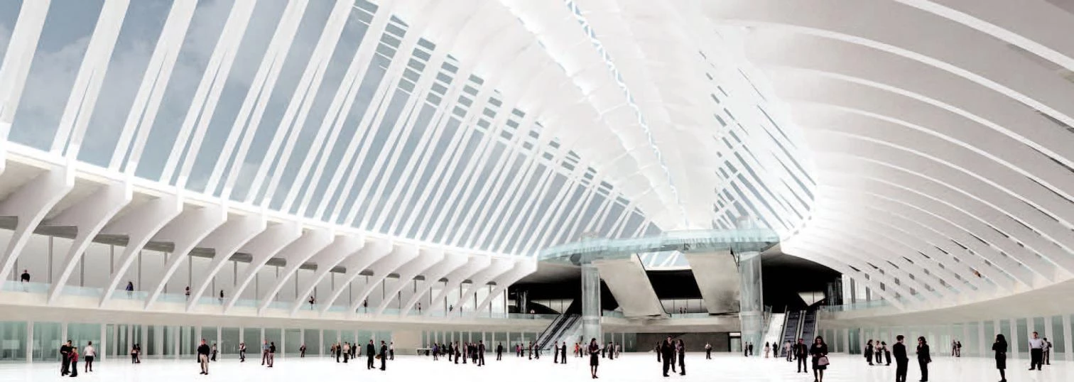 El español Santiago Calatrava fue elegido para hacerse cargo de la estación subterránea (arriba); por su parte, Michael Arad y Peter Walker ganaron el concurso para erigir un memorial (abajo).