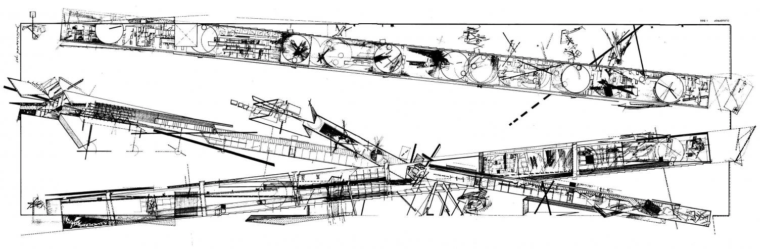 Los edificios destruidos por los recientes terremotos asiáticos resuenan en las maquetas los dibujos reticulados de Peter Eisenman como el derribo catalán tiene su eco en la obra fracturada de Coop Himmelb(l)au.