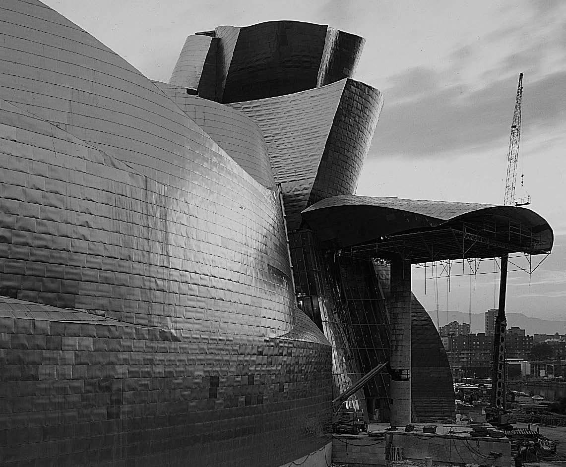 Estas arquitecturas no pueden delinquir contra la verdad de la estructura porque en su caso ésta no es sino una tramoya que sostiene un escenario teatral. Utilizando los términos de Semper, su revestimiento no es Bekleidung sino Verkleidung: no es indumentaria sino disfraz. Las escamas de titanio del Guggenheim bilbaíno o los retales de acero inoxidable de Daniel Libeskind en el Museo Judío berlinés son el attrezzo tormentoso o desgarrado de la función del fin de siglo, y en estos jirones agitados se expresa dramáticamente el Zeitgeist. Pero lo mismo que la torre de Einstein en Potsdam representaba mejor el Angst de la época que la teoría de la relatividad, así nuestras construcciones fracturadas constituyen más bien exorcismos ante las catástrofes de un tránsito histórico que ilustraciones de la matemática caótica y fractal. Baudelerianas al fin, en su belleza convulsa habitan las sombras y la esperanza de un siglo que termina.