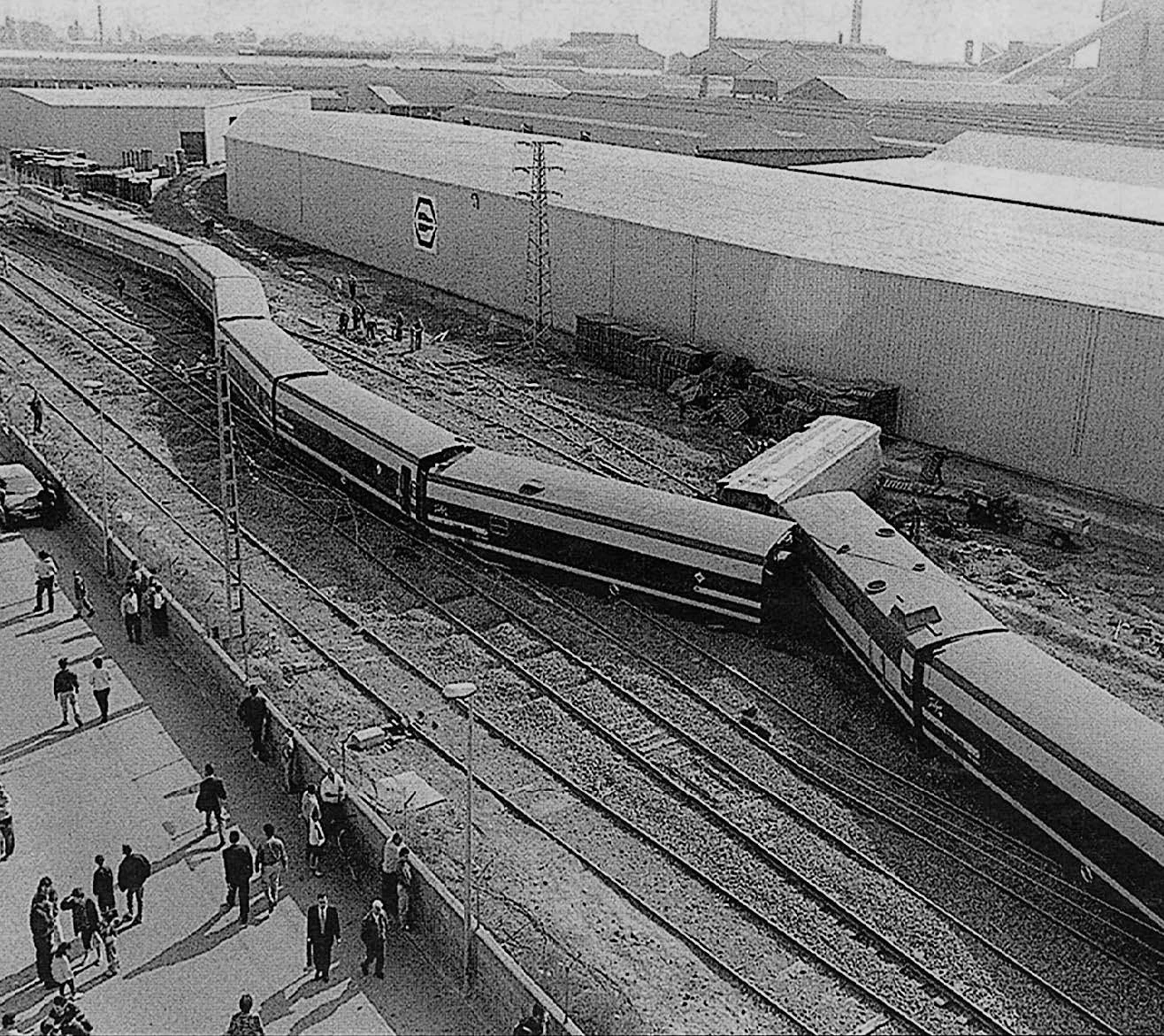 La devastación producida por voladuras o accidentes recuerda las geometrías convulsas de Frank Gehry lo mismo que el descarrilamiento español remite a las bandas yuxtapuestas de los proyectos de Zaha Hadid.