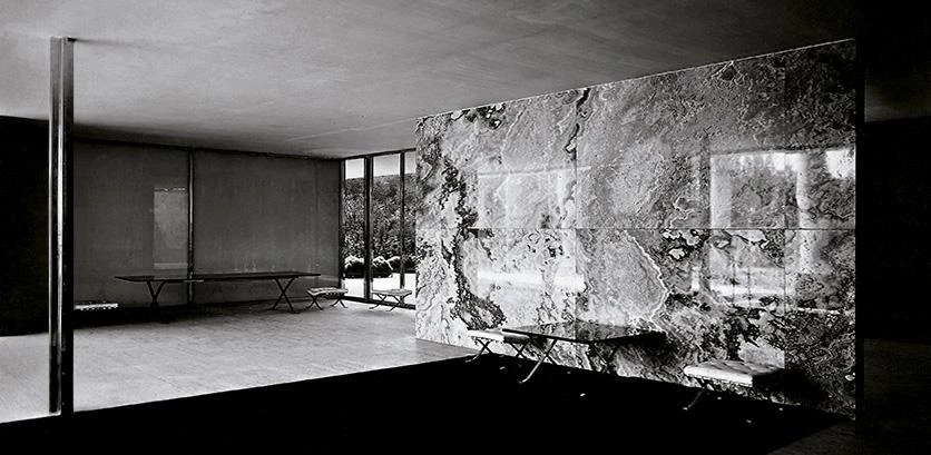 En el Pabellón de Barcelona, Mies reunió el lenguaje espacial de Frank Lloyd Wright con las intuiciones plásticas de De Stijl para crear un idioma arquitectónico sustancialmente nuevo, que ya en su tiempo fue recibido con admiración —el propio Wright, habitualmente parco en el elogio, lo reconocería de inmediato, aunque no renunciara a intentar convencerlo de que prescindiera de «esos postes tan peligrosos»—, y que pasó a formar parte del patrimonio esencial del Movimiento Moderno. Las circunstancias políticas de Alemania y Europa, sin embargo, no permitieron que este idioma arraigase, y Mies no llegó a construir ninguna obra significativa en los años siguientes, que dedicó a la enseñanza en la Bauhaus y a un sinnúmero de proyectos y concursos con los que procuró adaptar su arquitectura al cambiante panorama ideológico y económico.