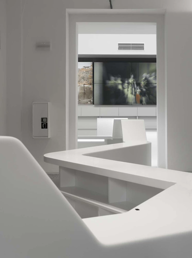 El empleo de HI-MACS® en gran parte del mobiliario de la oficina de turismo, de color blanco, contrasta con los materiales preexistentes, realzando así tanto los elementos históricos como los contemporáneos. HI-MACS