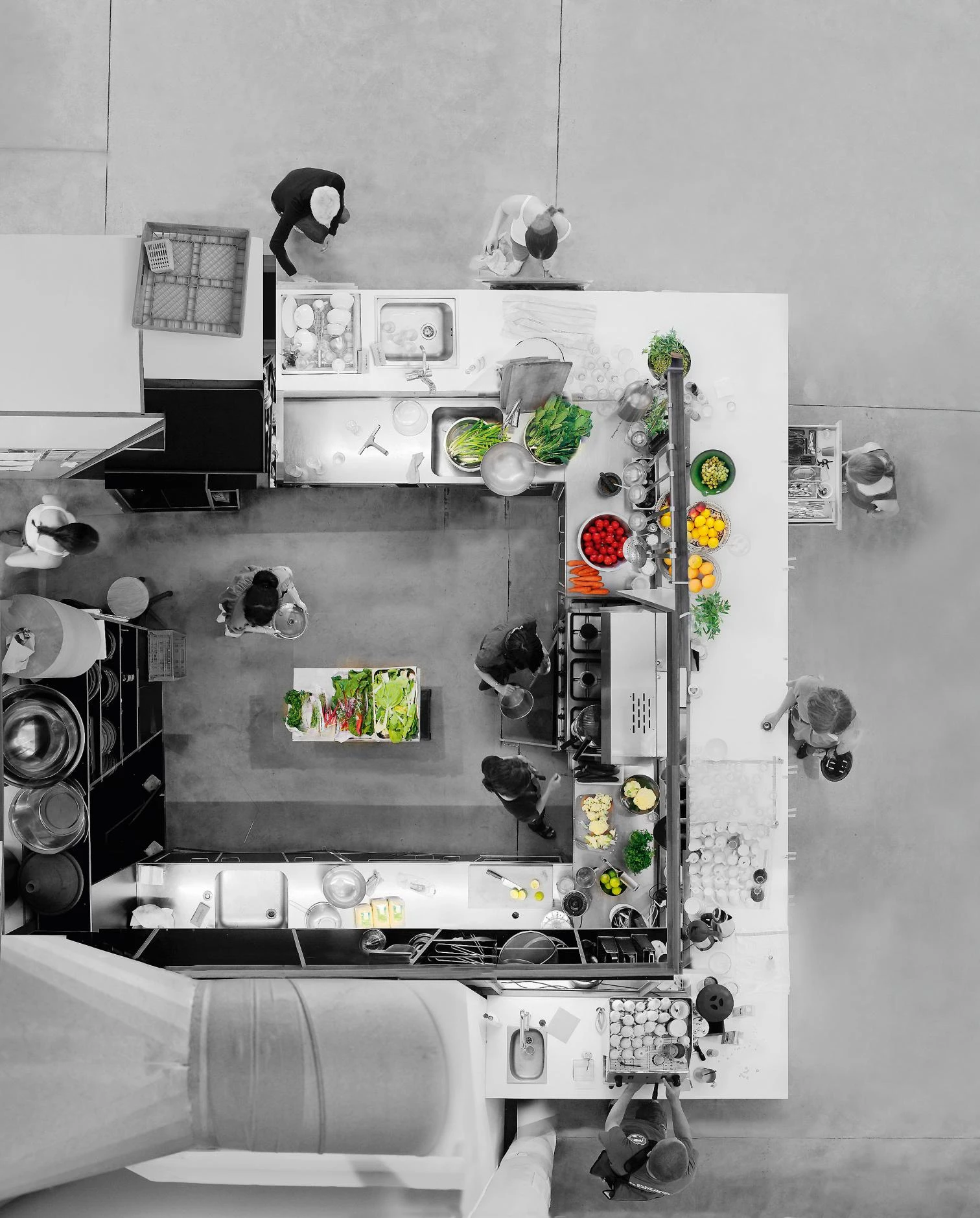 En las últimas décadas, la cocina mecánica y segregada en la que se enclaustra al ama de casa trabajadora o burguesa —una jaula de oro de gadgets rutilantes— ha dejado paso a la cocina que se funde con el comedor para ocupar el centro de la vivienda o el lugar de trabajo: una cocina recreativa que celebra el acto de cocinar y homenajea los sentidos, promoviendo la comida como una ceremonia comunitaria. Ese es el hilo conductor que une las experiencias en los años 80 del tipógrafo, diseñador y cocinero alemán Otl Aicher con las del artista nórdico Olafur Eliasson en este siglo, y que se extienden desde Die Küche zum Kochen de 1982 hasta The Kitchen de 2016: un tránsito feliz que ha rescatado el alimento de la preparación mecanicista y a la cocina de la ostentación electrodoméstica, volviendo a situar al fuego en el centro de la casa y de la vida.