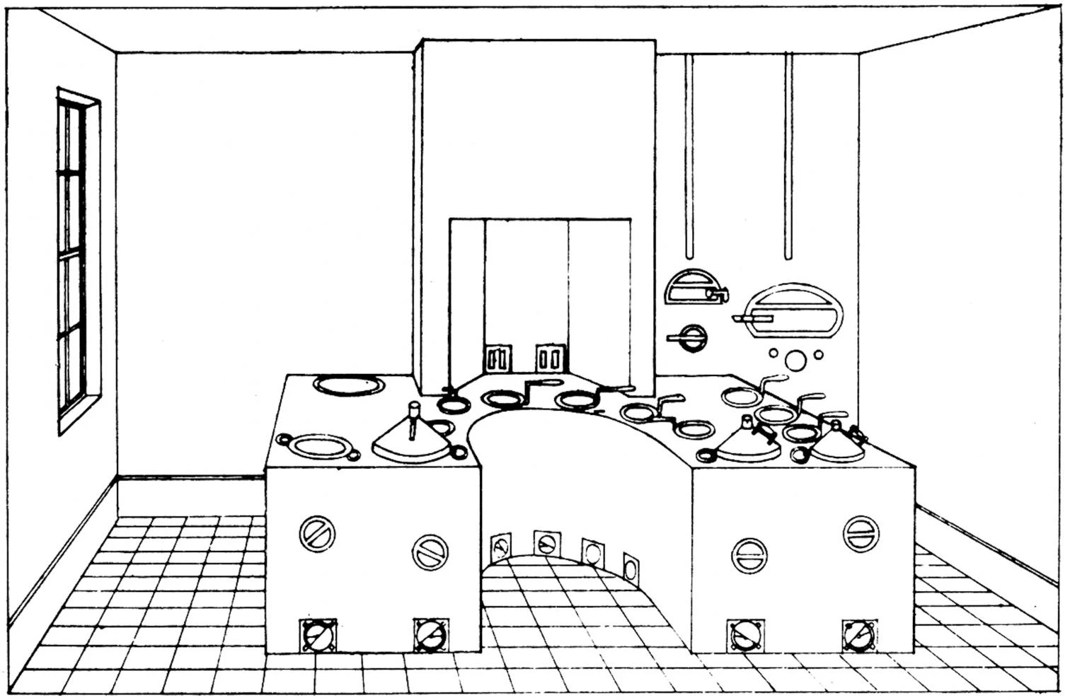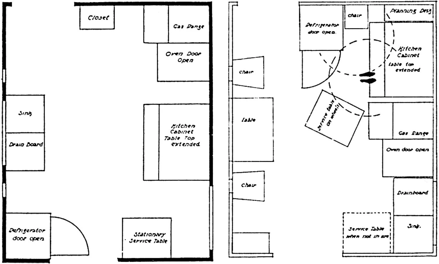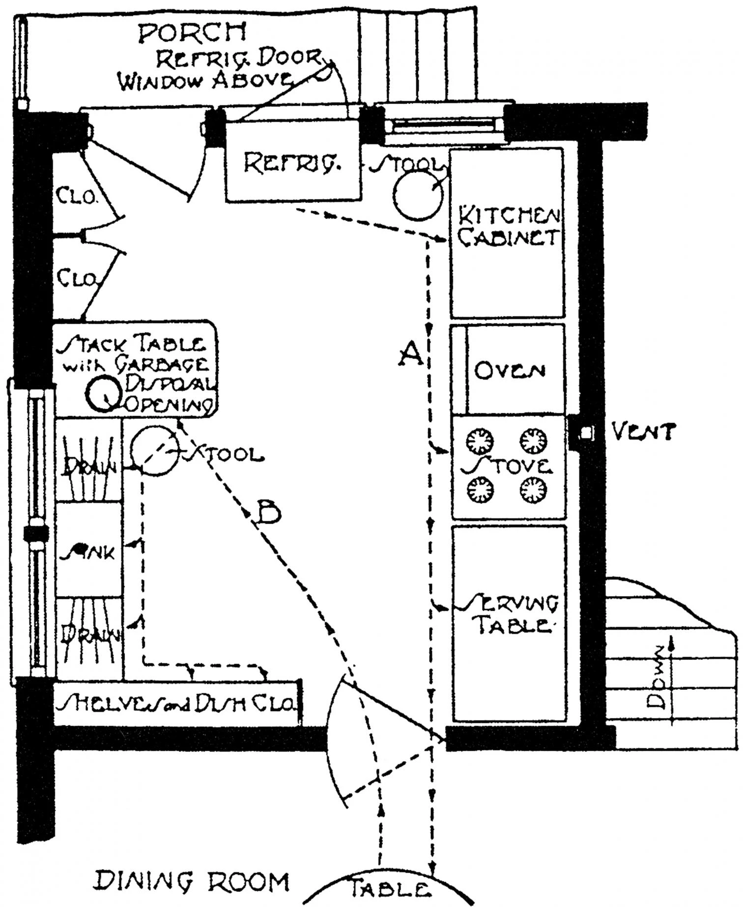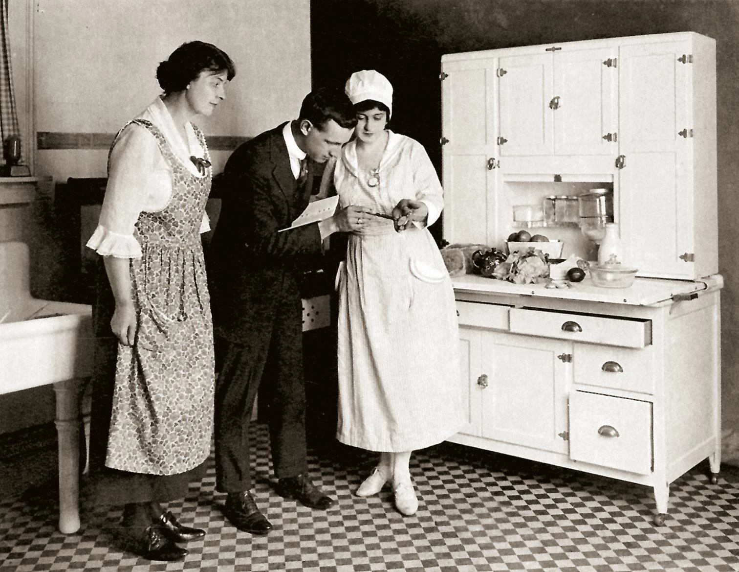 Tras las propuestas de Beecher a mediados del siglo XIX, y al margen de las mejoras técnicas en los hornos o placas de los dispositivos para cocinar, la siguiente gran transformación en la arquitectura de la cocina tendría lugar en el periodo de entreguerras del siglo XX, coincidente con la extensión de las redes de agua, electricidad y gas, y el crecimiento de la industria alimentaria. Las protagonistas serían cuatro mujeres, de nacionalidades y profesiones diferentes, pero fascinadas todas por la racionalización de los procesos productivos que había popularizado el ingeniero y economista estadounidense Frederick Winslow Taylor, cuyos estudios sobre la organización científica del trabajo marcaron a toda una generación. La más temprana y acaso la más original de estas reformadoras domésticas fue la publicista estadounidense Christine Frederick, que aplicó los principios de Taylor al diseño de las cocinas, realizando multitud de experimentos en su propio domicilio neoyorquino y exponiendo a partir de 1912 los resultados en el Ladies’ Home Journal, la influyente revista donde también publicó sus proyectos Frank Lloyd Wright. Recopilados el año siguiente bajo el título The New Housekeeping, y complementados con el Household Engineering de 1919 (que reúne los materiales de un curso por correo), los textos de Frederick popularizarían el taylorismo doméstico —y la obsolescencia programada, que defendía como ‘despilfarro creativo’— en América y en Europa, donde serían leídos con avidez por las vanguardias.
