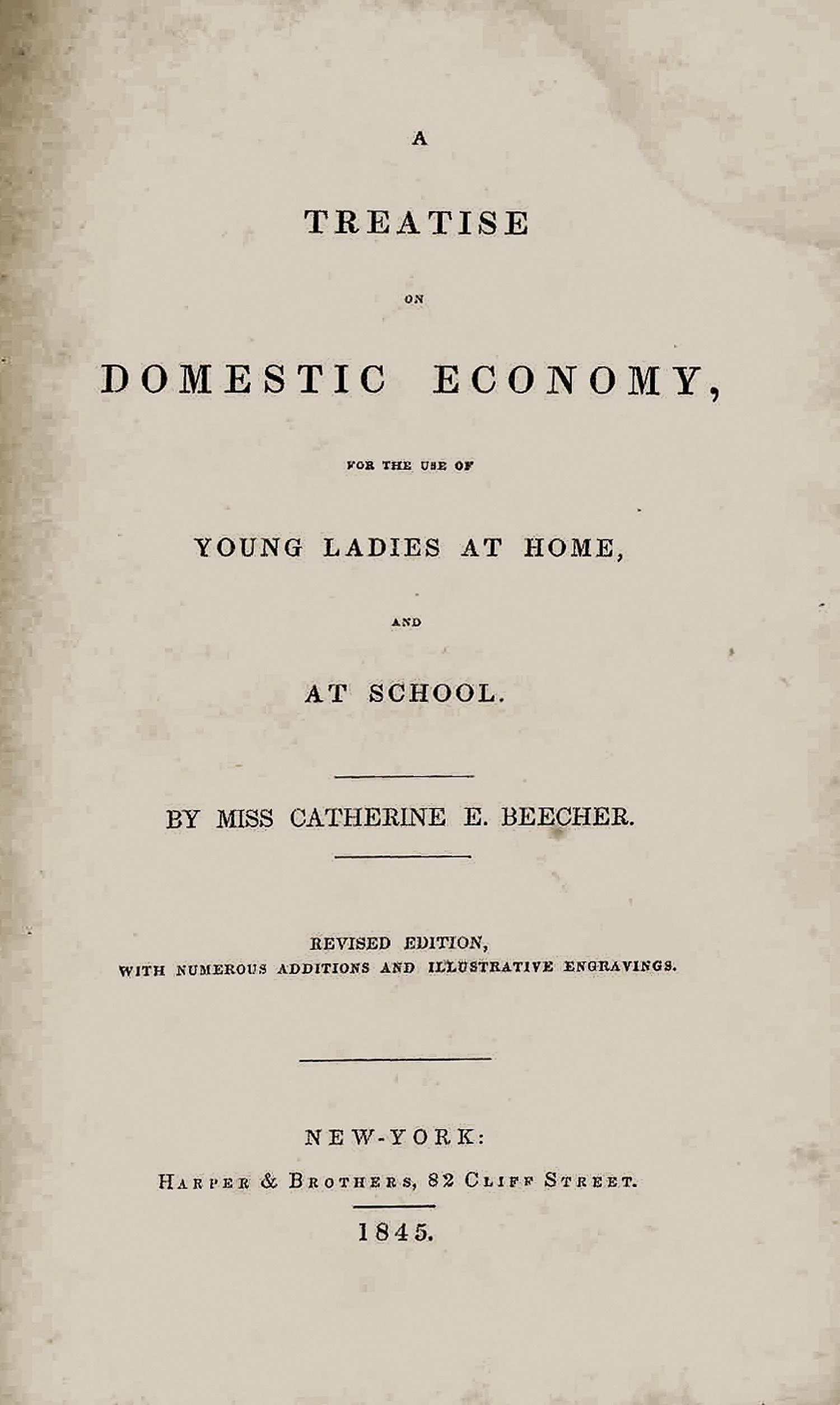 Siendo importantes las aportaciones de todos ellos a la mejora de la combustión y al perfeccionamiento del empleo arquitectónico del fuego, el papel pionero en la racionalización de las cocinas domésticas corresponde por derecho a la formidable Catherine Beecher, una pedagoga estadounidense de familia abolicionista —su padre y sus dos hermanos, todos ellos clérigos, lo eran, y su hermana Harriet es sobre todo conocida como autora de La cabaña del tío Tom—, que defendió vigorosamente la educación de la mujer y la simplificación de las tareas domésticas, y que con su A Treatise on Domestic Economy de 1842 propuso una reforma de los espacios y el mobiliario de las cocinas inspirada por el diseño ajustado de estas en los barcos o en los trenes.