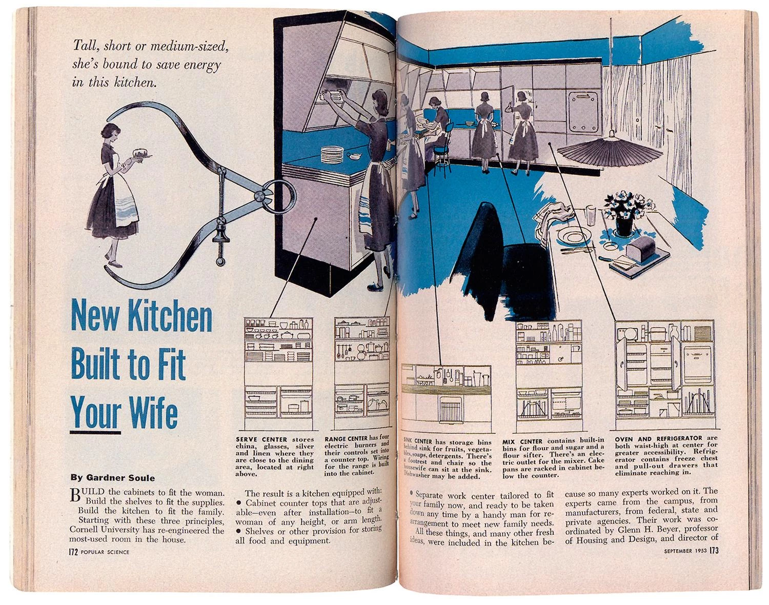 La cocina funcionalista gestada por estas reformadoras de entreguerras, cuya mecanización taylorista promueve sobre todo la simplificación del trabajo doméstico, se promueve en la década de 1930 a través de las revistas de arquitectura, los fabricantes, la publicidad y gobiernos como el estadounidense de Roosevelt con su empeño en la electrificación de la casa y la cocina, usando medios de difusión que no excluyen el cinematográfico. Pero para su extensión generalizada habrá que esperar a la reconstrucción económica posterior a la II Guerra Mundial y al boom del consumo en la década de 1950, cuando la cocina y sus electrodomésticos se convierten en objeto de deseo y símbolo de estatus. El famoso ‘debate en la cocina’, que enfrentó al entonces vicepresidente de Estados Unidos Richard Nixon y al premier soviético Nikita Jruschov en la cocina del stand de General Electric en la Exposición Americana de Moscú de 1959, permitió concebir la posibilidad de trasladar la competencia armamentística y nuclear entre las superpotencias de la Guerra Fría al terreno más amable de los bienes de consumo, y la cocina puesta como ejemplo por el californiano Nixon del bienestar que el capitalismo podía suministrar a las masas sería —pese a los sarcasmos de Jruschov— replicada pocos años después en la Unión Soviética, evidenciando así la victoria universal de la cocina moderna.
