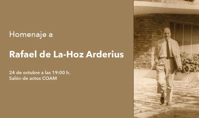 El Colegio Oficial de Arquitectos de Madrid y la Fundación Arquitectura COAM organizan el próximo jueves, 24 de octubre a las 19:00, un homenaje al arquitecto Rafael de La-Hoz Arderius, con motivo del centenario de su nacimiento, cumplido el pasado 9 de octubre.