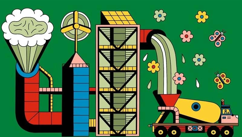 This is bad news for global warming. The problem is that concrete’s crucial ingredient, cement, which is mixed with sand, gravel and water to make the stuff, is responsible for a huge amount of greenhouse-gas emissions. Taking in its various stages of production, the 5bn tonnes of cement produced each year account for 8% of the world’s anthropogenic CO2 emissions. If the cement industry were a country it would be the third-largest emitter in the world, after China and America...