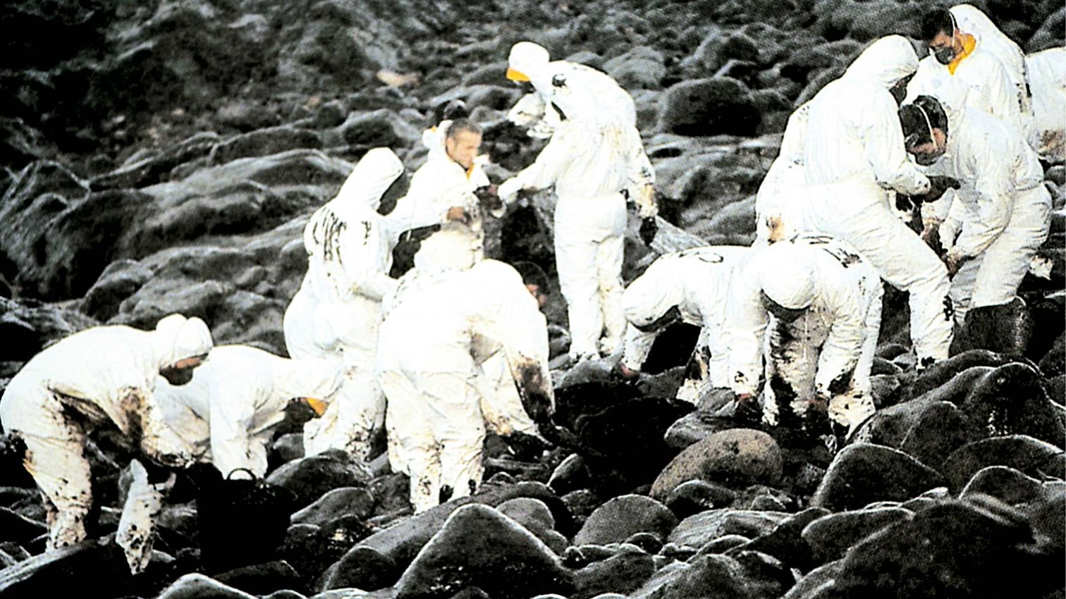 Soldiers cleaning oil from the Prestige in Galician coast, 2003