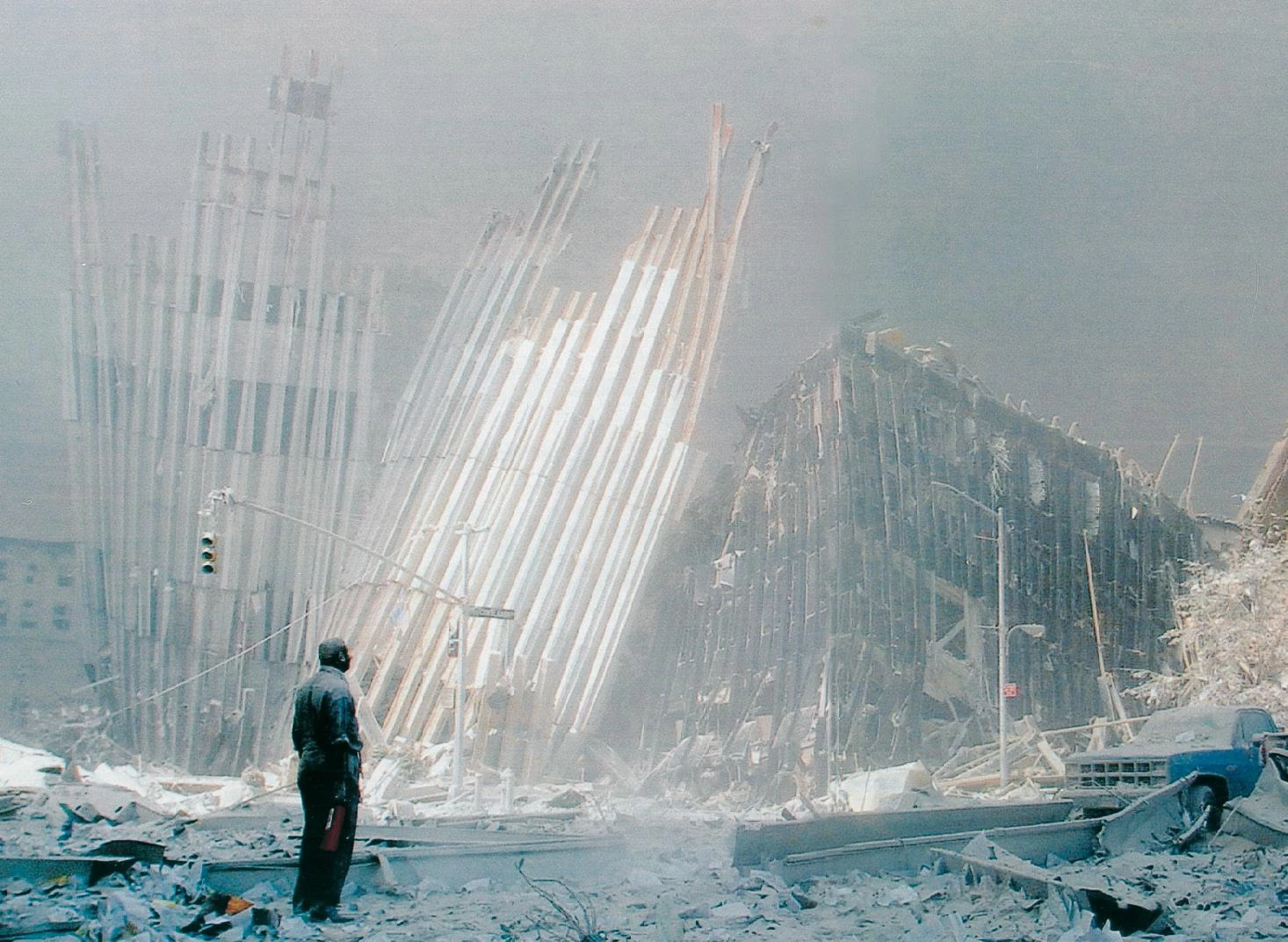 El símbolo del poder estadounidense quedó reducido a escombros humeantes, en los que fragmentos de la celosía de fachada diseñada por Yamasaki recordaban la cualidad leve de los colosos gemelos.