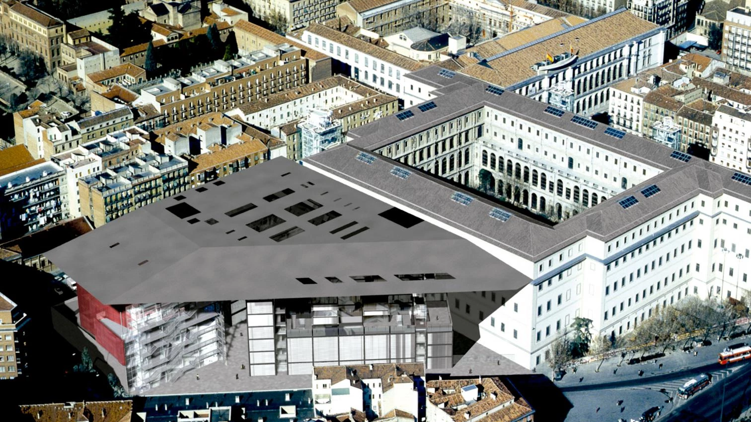 Jardines de agua en lo que hasta ahora fueron terrenos baldíos en el extrarradio; crestas de fundición talladas sobre una central eléctrica abandonada; aves metálicas sobre las pistas de un aeropuerto; un gran plano flotante adyacente a un antiguo hospital; una caja mágica abierta hacia múltiples direcciones en la ribera del río; una enorme ventana que enmarca la sierra lejana elevándose sobre el monótono paisaje de los interminables nuevos barrios...