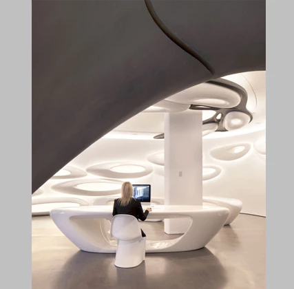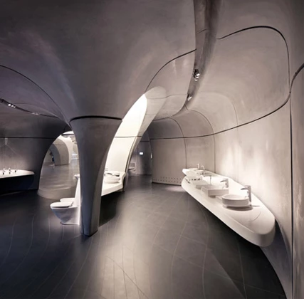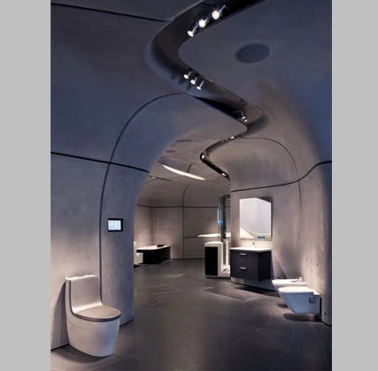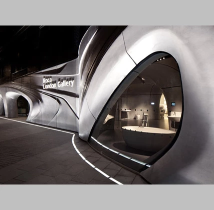 La ‘Roca London Gallery’, el nuevo emblema de la marca española, abre sus puertas en el corazón del londinense Chelsea Harbour. Diseñado por Zaha Hadid, el proyecto adopta un lenguaje formal inspirado en la circulación del agua. La galería, situada en la planta baja de un edificio existente, se presenta al exterior con una fachada cargada de identidad. A partir de tres arcos de acceso, los diferentes espacios se suceden de forma dinámica entre superficies onduladas que integran tanto el mobiliario como los elementos de exposición.