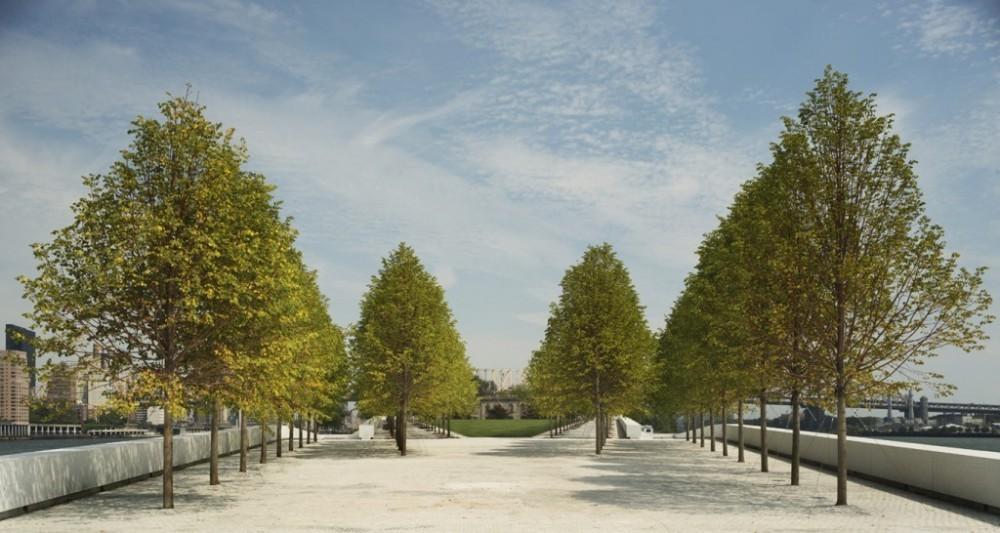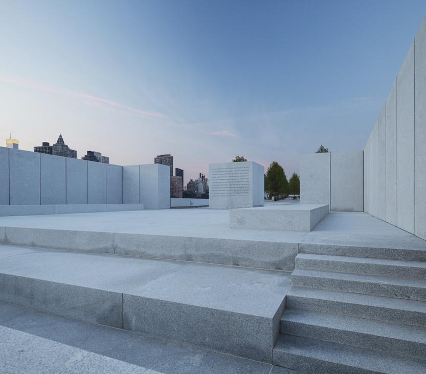 Concebido hace 38 años —un año antes de su muerte—, por Louis Kahn (1901-1974), se acaba de inaugurar en Nueva York el Four Freedoms Park. La obra póstuma de uno de los más grandes arquitectos del siglo XX rinde homenaje al Discurso de las Cuatro Libertades de Franklin D. Roosevelt sobre la necesidad de que cada individuo disfrutase de la libertad de expresión, de creencias, de vivir sin penuria y de vivir sin miedo. Debido a la difícil situación económica de los Estados Unidos en la década de 1970, el proyecto no pudo llevarse a cabo entonces, y casi cuatro décadas después, en marzo de 2010, comenzó la construcción, dirigida por la arquitecta Gina Pollara. En la mitad del East River se sitúa la Roosevelt Island —cuyo desarrollo urbanístico actual proviene de el masterplan de Philip Johnson y John Burgee—; la forma triangular en que acaba la zona sur de la estrecha isla se enfatiza con el parque, cuya zona verde perfilada por una hilera de árboles concentra la mirada del espectador en el memorial de Roosevelt: un conjunto de grandes bloques de granito, con una mínima separación entre ellos para dejar penetrar la luz que se proyecta en el suelo.