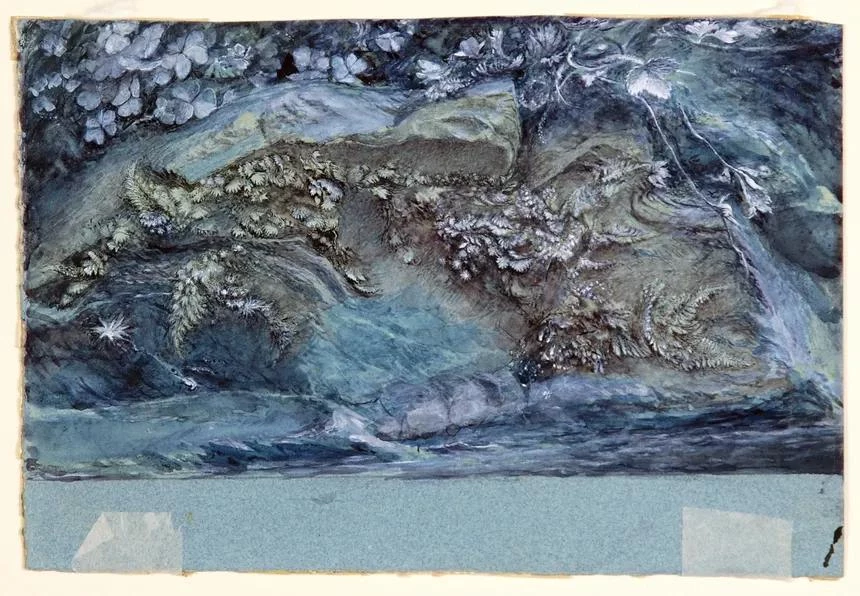 Study of Moss, Fern and Wood -Sorrel, upon a Rocky River Bank, 1875-79. Photograph: Hazel Drummond/© Collection of the Guild of St George / Museums Sheffield