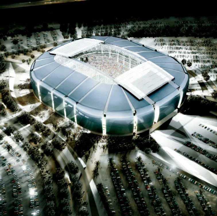 Los tentáculos fláccidos que amplían el estadio coruñés de Riazor (abajo) albergan viviendas, hotel y oficinas; y el caparazón estriado del diseñado en Glendale, Arizona, unifica usos deportivos y comerciales.