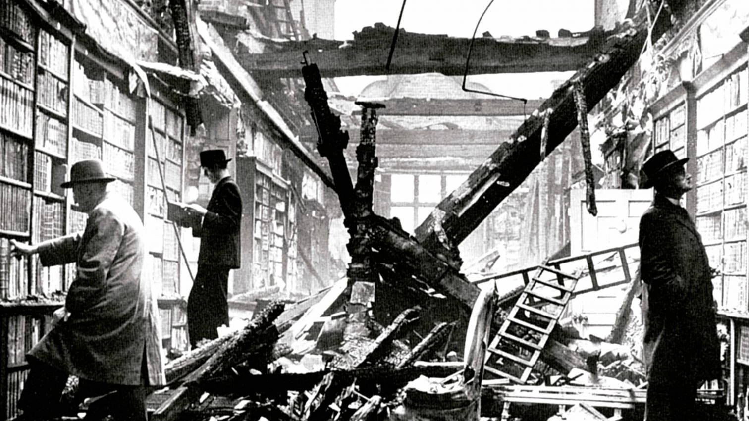 La biblioteca de Holland House, en Londres, dañada por las bombas alemanas