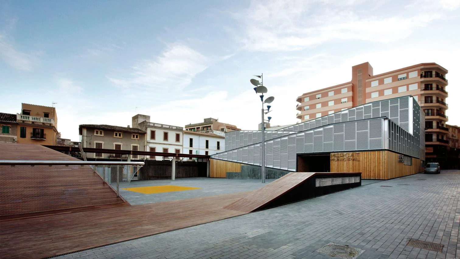 Después de un proceso largo y complejo que ha durado diez años desde la celebración del concurso, el estudio barcelonés dirigido por Charmaine Lay y Carles Muro ha finalizado la construcción del nuevo mercado municipal cubierto de la localidad mallorquina de Inca. La demolición del antiguo edificio ha permitido redescubrir un nuevo espacio público en pleno centro de la ciudad. El amplio programa requerido, y la voluntad de conseguir la mayor cantidad posible de espacio público han llevado a la decisión de construir la mayor parte de los usos en cuatro cuatro plantas bajo rasante. Un pavimento de madera conforma una cinta que da continuidad al proyecto, albergando bajo ella un aparcamiento de 121 plazas, un supermercado, locales comerciales, oficinas municipales y el mercado propiamente dicho, con doce puestos. La cinta se levanta desde un extremo para cubrir el acceso a aparcamiento subterráneo y se prolonga horizontalmente cubriendo el espacio público principal. La inversión ha alcanzado los 11 millones de euros.