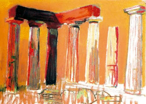 La trascendencia del paso de Kahn por la Academia Americana en Roma veinte años después de su primer viaje a Europa se evidencia en la intensidad de los dibujos realizados entre 1950 y 1951 (abajo, esta página y la siguiente).