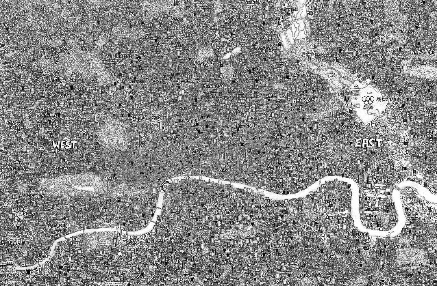Minuciosos y abigarrados, los mapas de Stephen Walter (Londres, 1975) sirven al artista para investigar el fenómeno de los residuos culturales que habitan nuestros paisajes, formando un enmarañado conjunto de experiencias personales y colectivas. Cada una de sus obras es un mundo en sí mismo, un complejo compendio de palabras, símbolos y dibujos donde el autor proyecta su propias vivencias y sus inquietudes personales. Publicado recientemente, el libro The Island. London Mapped presenta en forma de atlas el meticuloso estudio de Walter sobre su ciudad, una de sus obras principales. Otras obras, como Similands, Nova Utopia y Hub se presentan también a continuación... [+]