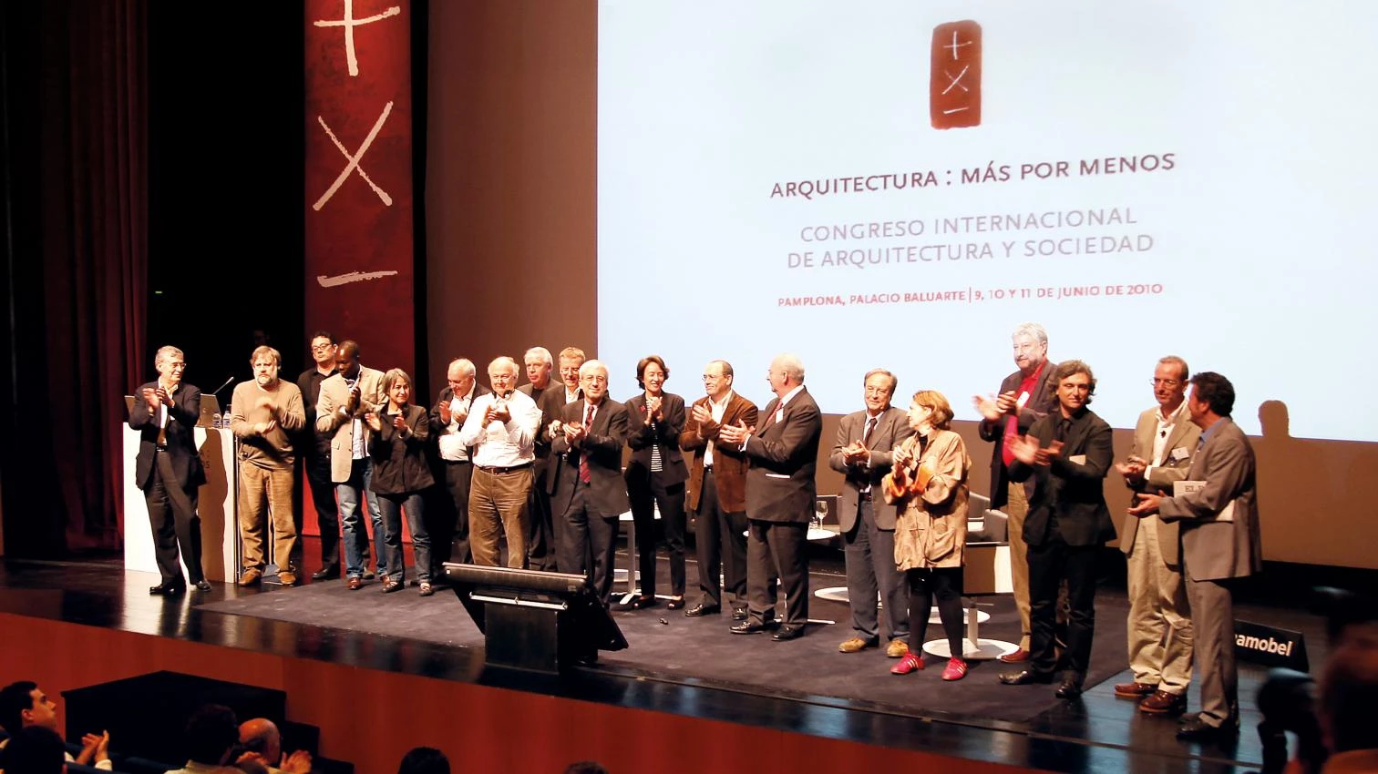 Tres intensos días de debates y conversaciones, un lugar de encuentro entre profesionales, estudiantes y agentes sociales, una plataforma para el acercamiento mutuo entre arquitectura y sociedad; el Congreso Internacional ‘Arquitectura: más por menos’ celebrado en junio de 2010 en el Baluarte de Pamplona ha ofrecido a sus asistentes un conjunto de voces y enfoques variados, muchas veces distantes en lo conceptual y lo geográfico, sobre aspectos como el poder de la arquitectura, su función como cobijo, su respuesta a la demanda de eficacia, su relación con el placer, o qué es lo que hoy la disciplina puede prometer. Entre los ponentes, el gancho mediático lo ponía la coincidencia de tres premios Pritzker: Renzo Piano, Jaques Herzog y Glenn Murcutt, pero quienes realmente sorprendieron y tocaron el corazón del público fueron los representantes de países ‘periféricos’, arquitectos más jóvenes, como el colombiano Giancarlo Mazzanti, el chileno Alejandro Aravena o el burkinés Diébédo Francis Kéré, quienes trabajan con muchos menos medios materiales en contextos de gran precariedad y con resultados hermosos y dignos. Las conclusiones, en este tiempo de crisis de modelo, fueron esperanzadoras y serán recogidas en una publicación con las aportaciones de los ponentes y relatores (arriba, de izquierda a derecha, Juan Miguel Hernández León, Slavoj Zizek, Giancarlo Mazzanti, Diébédo Francis Kéré, Anne Lacaton, José Miguel Iribas, Glenn Murcutt, David Chipperfield, Mark Wigley, Luis Fernández-Galiano, Ángela García de Paredes, Francisco Mangado, Javier Conde, Vicente Verdú, Estrella de Diego, José María Fidalgo, Antón García Abril, Llàtzer Moix y Carlos Jiménez).