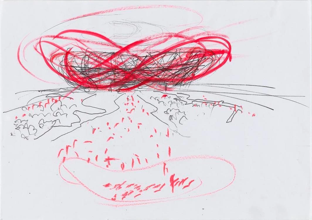 National Stadium, Bejing, China. 2002. Sketch.