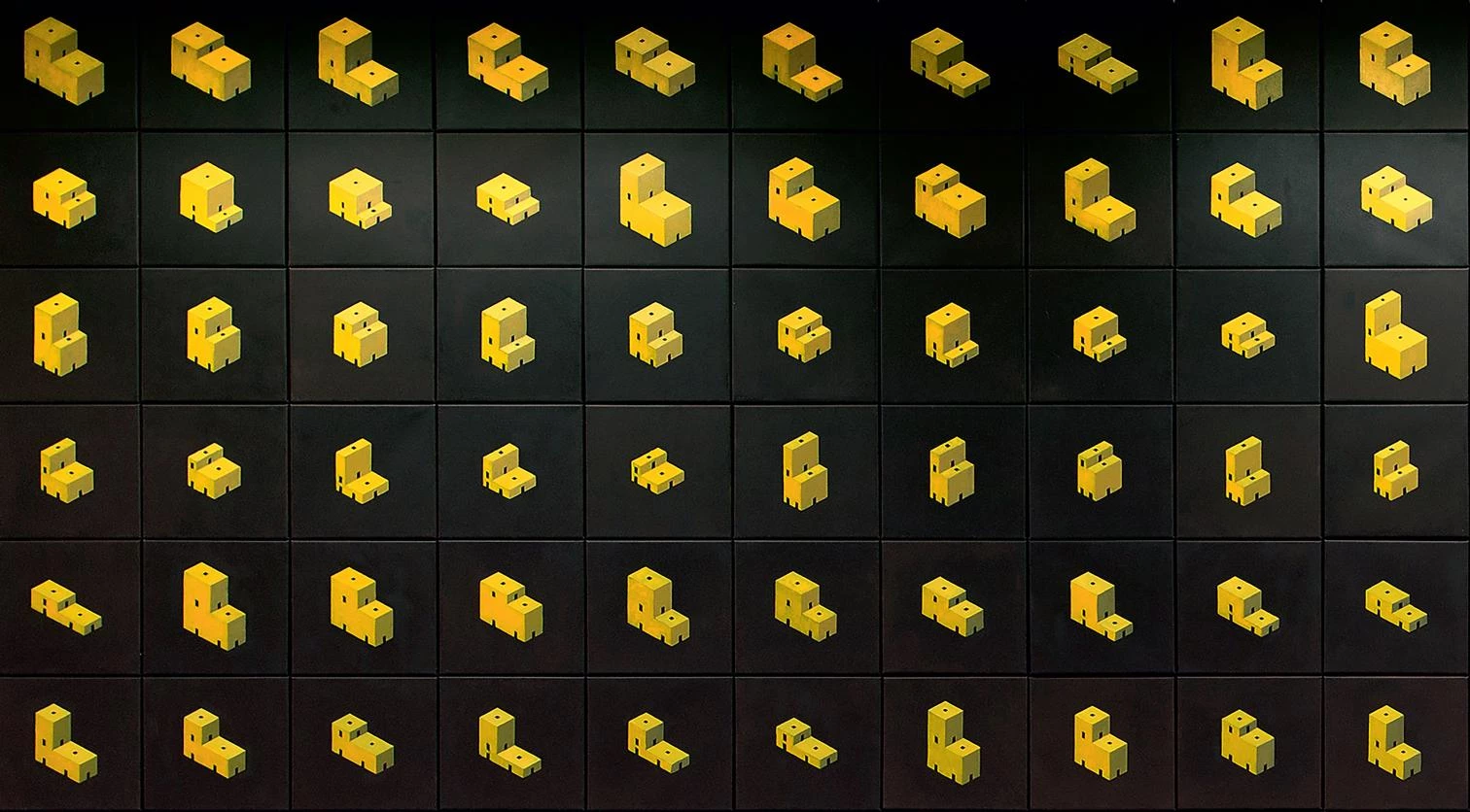 Pezo y Sofía son muy conscientes de este modo de trabajar: «Cada vez que terminamos un edificio sentimos que hemos realizado sólo una variación específica dentro de un conjunto de posibilidades relativas a una idea… jugando diferentes juegos con el mismo conjunto de reglas…» En cierto sentido, es precisamente ese juego de reglas el que resulta ser el auténtico protagonista de la obra. En Finite Format 002&003 se reproducen dos obras pictóricas, cada una de las cuales consta de 243 variaciones. En ellas ligeros cambios en los cinco factores dimensionales de unas configuraciones prismáticas se proponen agotar un conjunto de posibles relaciones. El producto es una suerte de música repetitiva, hecha de sutiles variaciones, que revela las posibilidades ocultas en una configuración inicial. La distinción entre forma y formato resulta central para los autores y puede extenderse también al modo en que abordan sus obras de arquitectura: «Un formato es tal vez nada más que un delicado y casi invisible trazado. Es el marco para un campo de acción, un contorno figura, o los delgados pero ininterrumpidos límites de una particular estructura espacial6».