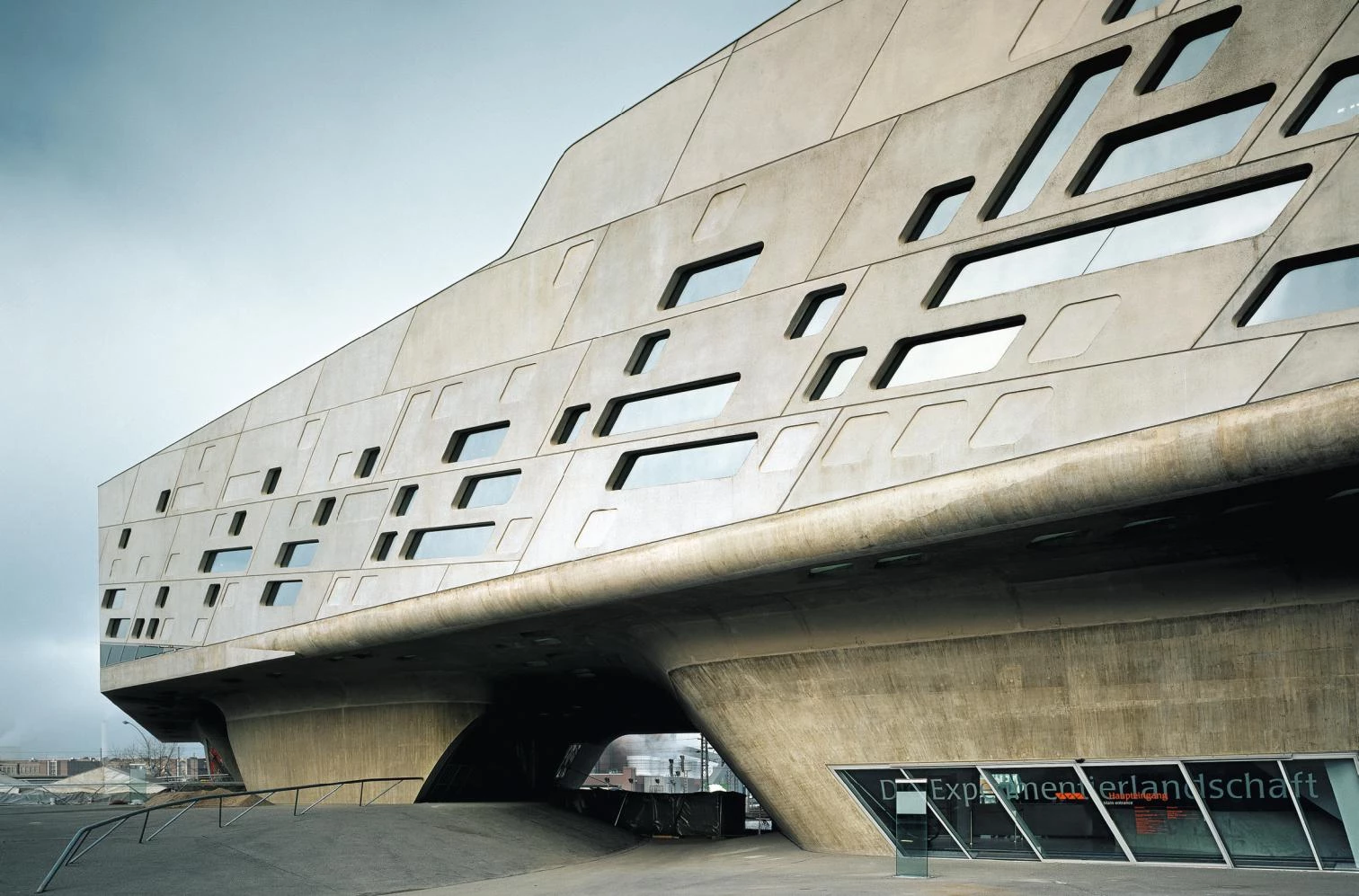 Las formas escultóricas y aceleradas de Zaha Hadid, ejecutadas en hormigón, evocan con eficacia la velocidad del automóvil, en obras como el icónico Centro de la Ciencia frente a la gran fábrica de Volkswagen en Wolfsburg.