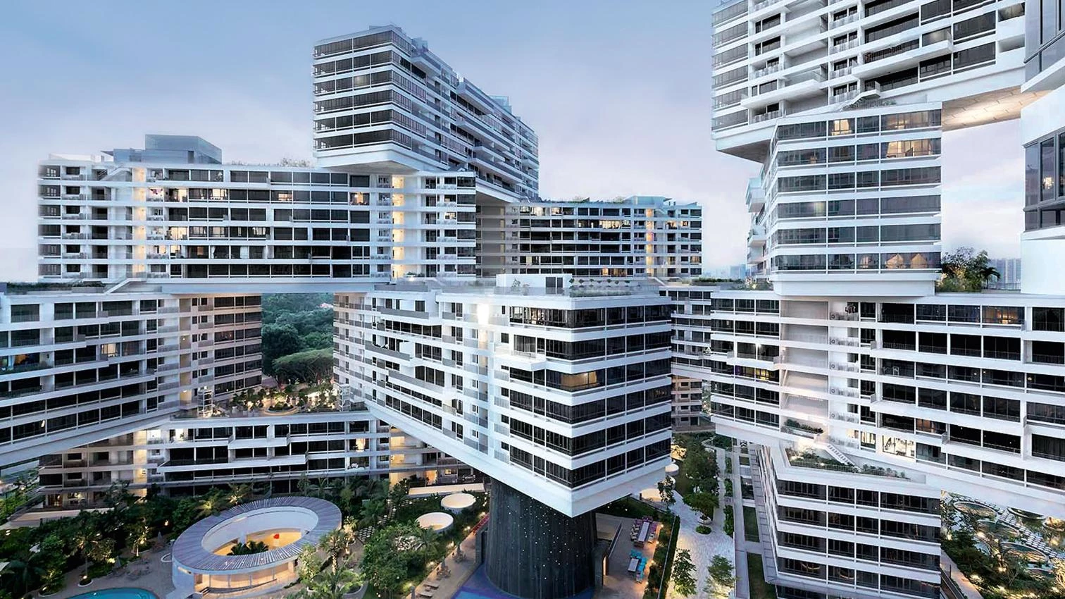La obra, que cuenta con más de mil apartamentos de diferentes tamaños, propone, como alternativa a los altos bloques de pisos aislados que proliferan en Singapur, una red de espacios vitales y comunitarios que se comunican entre sí y también con el medio ambiente, formando una suerte de ‘pueblo vertical’. Así, los 31 bloques de seis pisos que lo conforman tienen una longitud idéntica, y se disponen siguiendo una trama hexagonal, permitiendo la apertura de ocho grandes patios permeables que dan servicio a las viviendas.