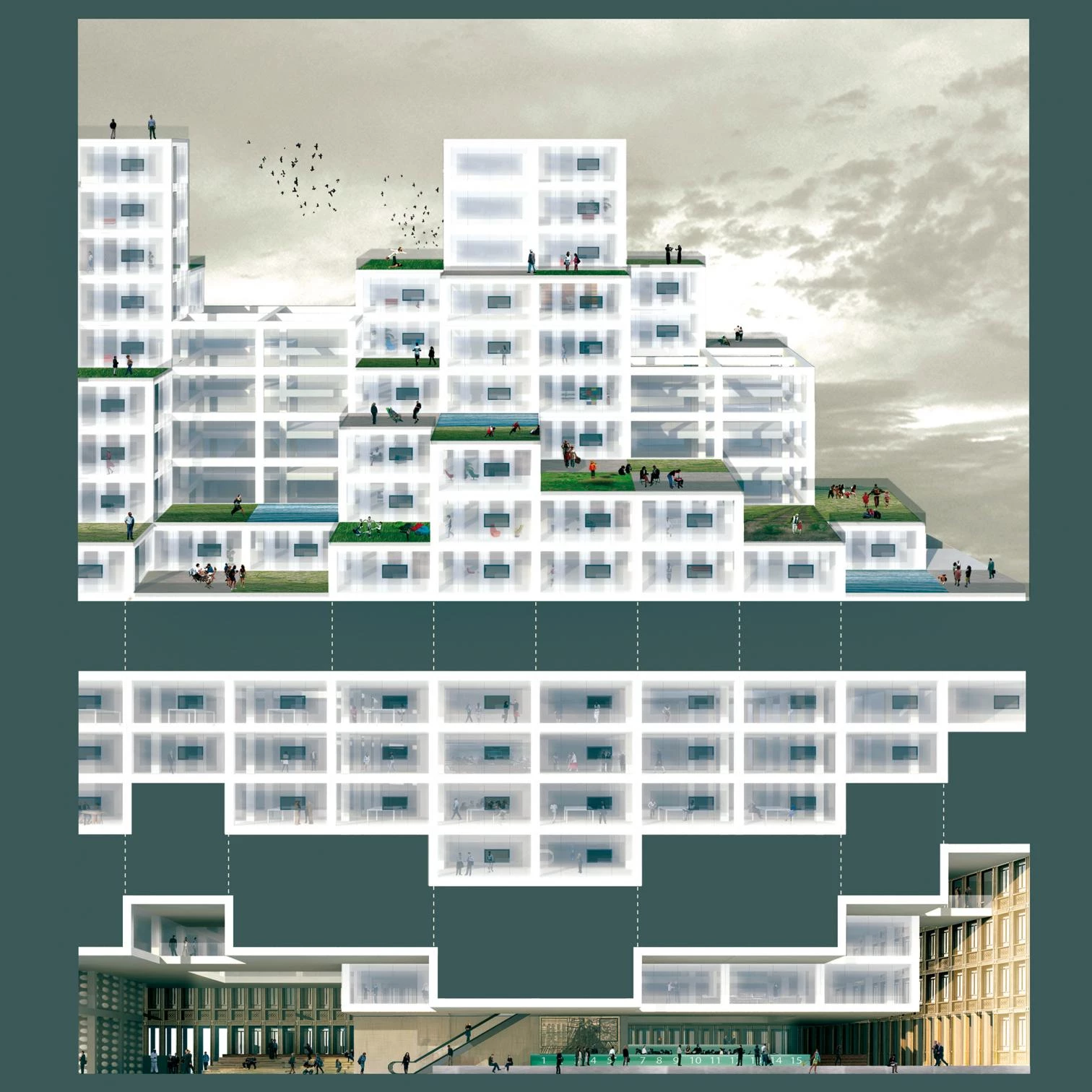 OMA, con Rem Koolhaas y Reinier de Graaf a la cabeza, se ha alzado con la victoria en el concurso para la ampliación del Ayuntamiento de Rotterdam, en colaboración con Werner Sobek y los ingenieros ABT. Los ciudadanos fueron invitados a participar en la elección a través de una página web donde se expusieron los cinco proyectos finalistas: además del de OMA, los de Claus y Kaan, Mecanoo, Meyer y Van Schooten, y SeARCH (véase AV Proyectos 34). Finalmente, tomando en consideración la opinión popular, el jurado se decantó por la propuesta modular de OMA por su «perfecta combinación de innovación y sostenibilidad», un proyecto que, según los arquitectos, «más allá de aspirar a ser un nuevo icono en el centro de Rotterdam, se presenta como una condición urbana, un skyline programado que absorbe el espíritu de las históricas construcciones colindantes».
