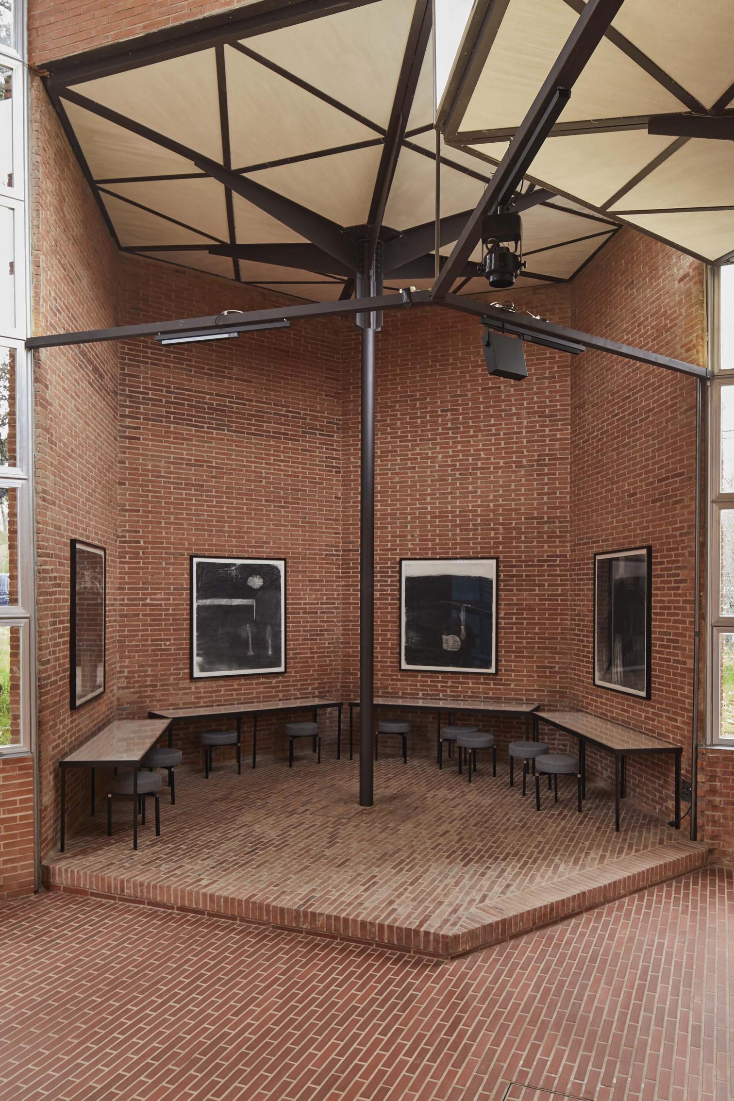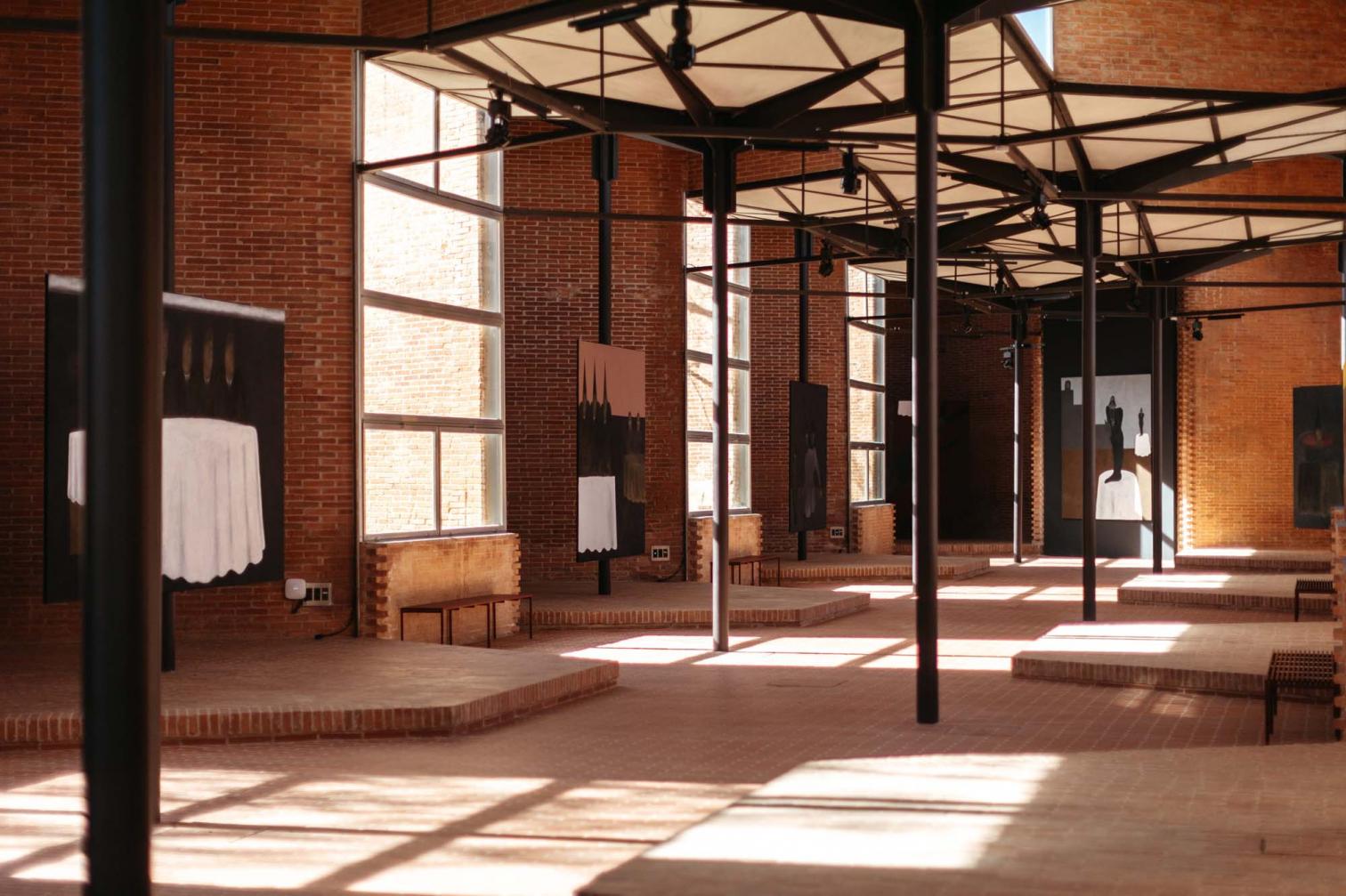 El trabajo de Taburet establece un diálogo con la arquitectura del pabellón, originalmente concebido para la Exposición Universal de Bruselas de 1958, y galardonado con la Medalla de Oro de la Expo. Gracias al montaje diseñado por el arquitecto Marcos Corrales, se ha logrado preservar la esencia de la arquitectura original, ofreciendo a los visitantes una experiencia artística integral que, además de las pinturas, incluye una banda sonora, escritos, dibujos y bocetos del propio artista.