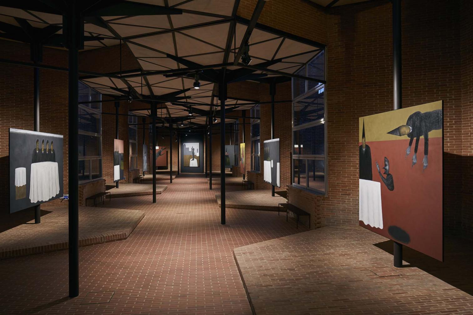 La exposición incluye obras creadas especialmente para este espacio, que son el resultado de diversas visitas al Museo del Prado y, en particular, del profundo estudio de las Pinturas Negras de Francisco de Goya, lo que se refleja en el uso de una paleta de tonos sombríos.
