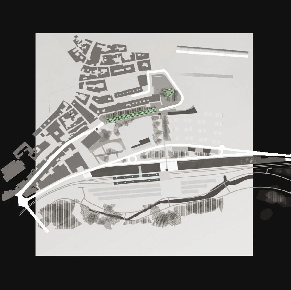 Moreno Mansilla y Tuñón propusieron un gran edificio cruciforme cubierto de girasoles fotovoltaicos sobre las vías de tren y el río, con un tranvía para salvar el desnivel entre la estación y el casco histórico.