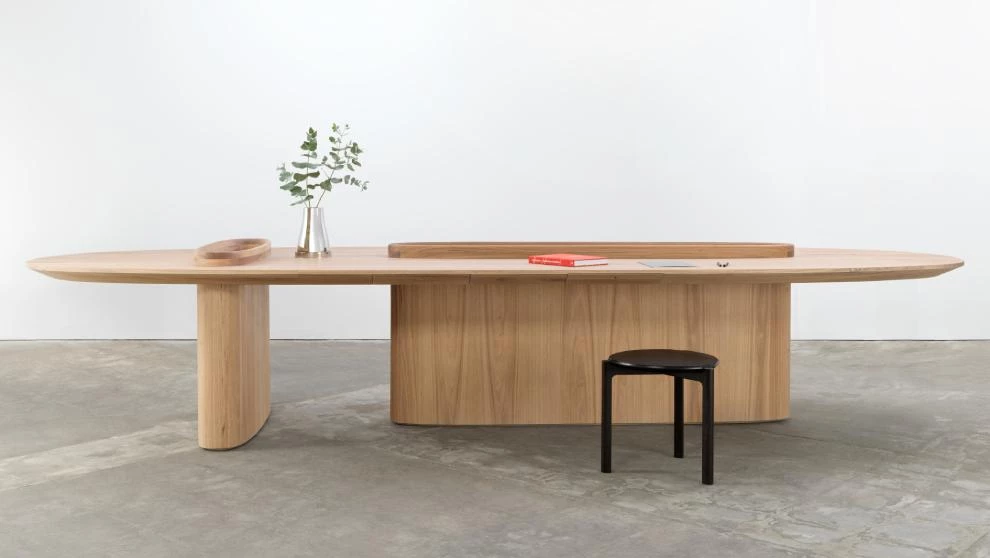 La importancia de esos edificios eclipsa otra de las patas del estudio, la de diseño de producto, aunque sea tan sólido como demuestra Intersection Worktable. Una mesa de trabajo de gran formato y factura impecable. Alcanza casi los 5 metros de largo que, combinados con el juego de planos, hacen de esta mesa uno de esos muebles en los que es imposible no fijarse...