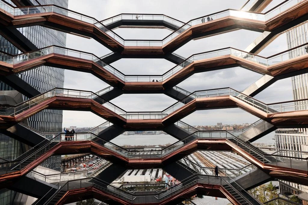 Instead, security will be tripled, and visitors will no longer be allowed to hike up the steps of the Vessel alone. Those who wish to climb the 150-foot spiraling sculpture’s tangle of interlocking stairs will be required to enter in pairs or groups.