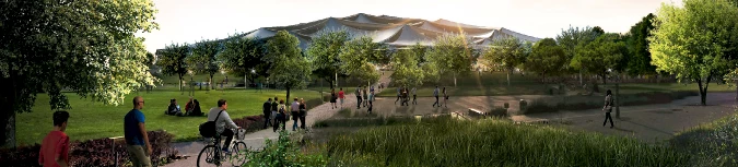 El proyecto de BIG para Google integra la sede en el paisaje; las terminadas de Foster para Apple y Gehry para Facebook muestran a través de sus diferentes arquitecturas el contraste entre dos estilos corporativos.