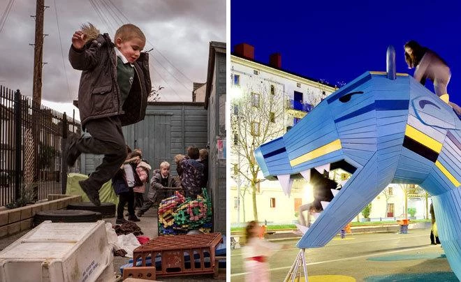 Frente a la versión moderna con columpio, tobogán y suelo a prueba de golpes, ahora triunfan otros parques que llevan el juego a un solar con barro, chatarra, ladrillos y botellas de cristal para 'espabilar' a los chavales. ¿Cuál es mejor para su educación?