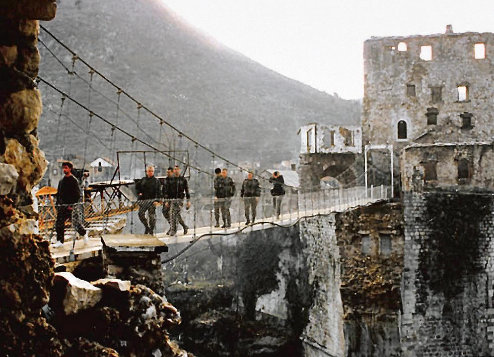 La radical devastación patrimonial que ha caracterizado el conflicto balcánico afectó a mezquitas como la de Donji Kamengrad (arriba) y a puentes como el histórico de Mostar (abajo).