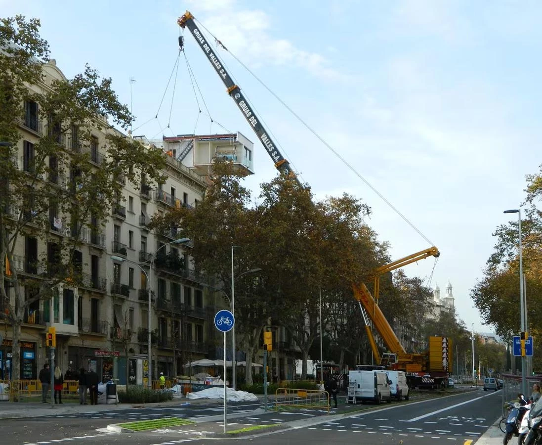 Los módulos se colocan en la cubierta del edificio situado en paseo de Sant Joan, 59, en Barcelona.
