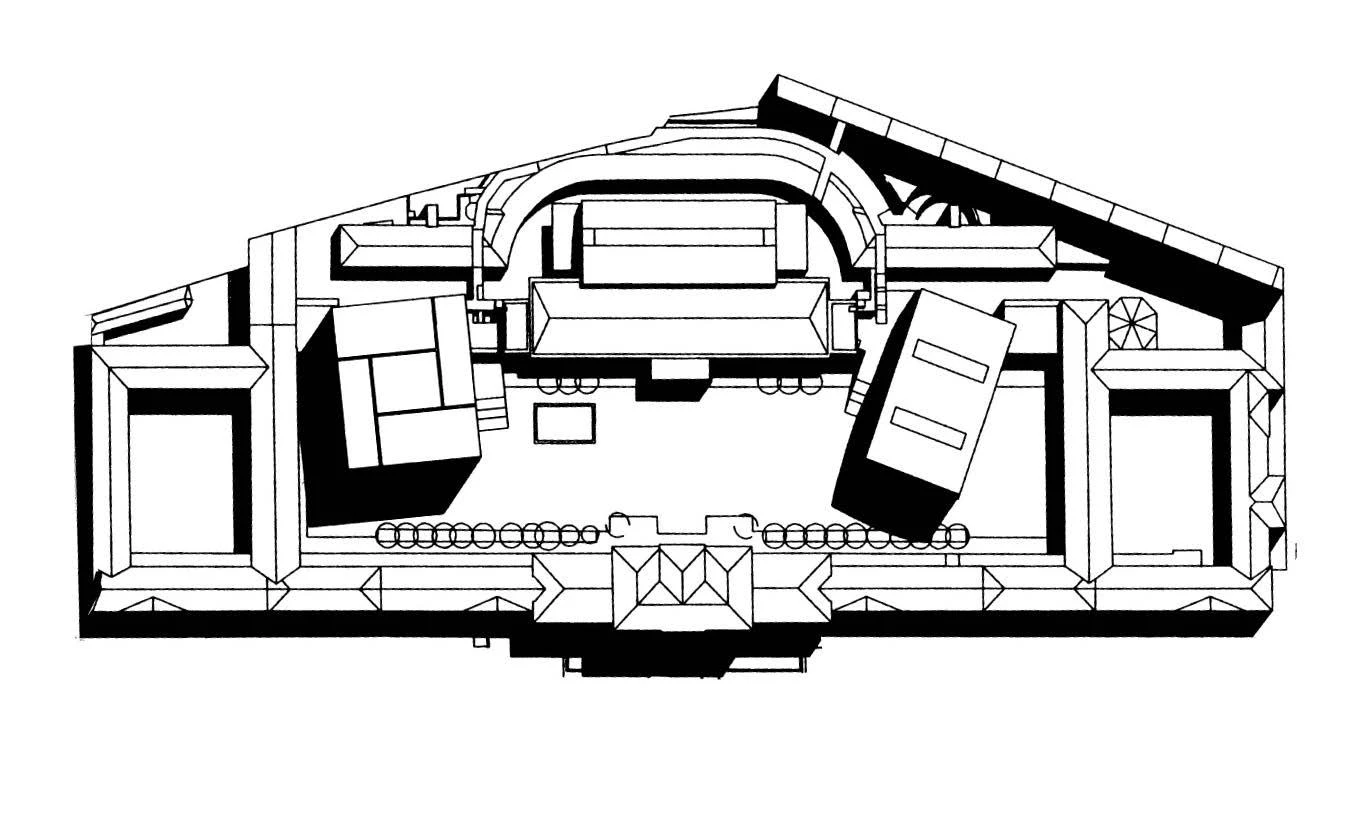 El proyecto mismo no era excelente, sólo correcto, varias piezas giradas dentro del gran patio de las caballerizas, en la estela del no realizado convento dominico de Louis Kahn de 1965, y de su reinterpretación posmoderna en un edificio proyectado en 1979 y terminado el mismo año de la convocatoria vienesa, el centro científico en Berlín de James Stirling, el más prominente miembro del jurado internacional que adjudicó el concurso. Las sucesivas revisiones que sufrió la propuesta original hasta el comienzo de las obras en 1998 obligaron a reducir la altura de las construcciones nuevas y suprimir la torre prevista frente a la fachada principal, eliminando así el diálogo previsto por los autores con los dos museos de Gottfried Semper frente a las caballerizas, el de Historia Natural y el Kunsthistorisches; pero permitiendo también la maduración del lenguaje de los arquitectos, que en una década se desplazó desde un historicismo conceptual y rossiano hasta un eclecticismo minimalista más del gusto convencional de los tiempos, y acaso en sintonía con el superficial eclecticismo barroco de Fisher von Erlach, más banal aquí que en el mestizaje arqueológico y surreal de la Karlskirche, con la pareja imperial de columnas trajanas enmarcando como pilares de Hércules la cúpula del catolicismo triunfante, admirado por los arquitectos revolucionarios franceses y sin embargo expresión exacta de lo que Bernhard llama el dudoso gusto artístico de los Habsburgo, esteta, repulsivo.