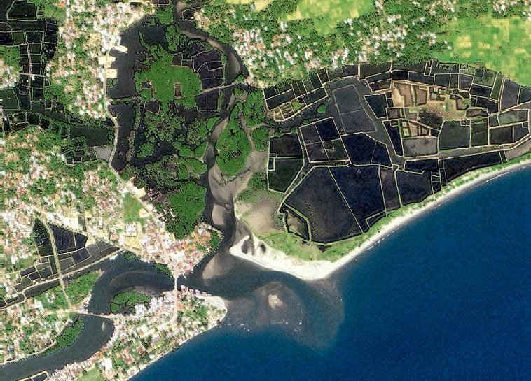 Perfiles costeros de la isla de Sumatra en Indonesia y de Tailandia, antes y después del maremoto.