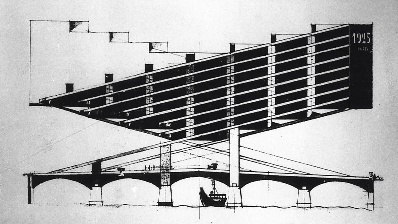 La publicación Mélnikov en París, 1925, es un libro de libros. El placer enorme de la lectura atenta de un texto tan preciso permite descubrir, de forma casi fractal, cómo y por qué contiene muchos otros libros. Uno de ellos parece estar dedicado a la ingravidez o el esfuerzo por trabajar evitando la gravedad. Otro se ocupa del collage como técnica de ensamblaje arquitectónico. Un tercero investiga por qué la ciudad no es una simple plataforma en la que se depositan objetos, sino que tiene sección, extendiéndose por abajo y por arriba. Este mismo libro arranca con la calle transformada en escalera del Pabellón de París, que engulle a los paseantes teñidos de luz roja para transformarlos en actores de una escenografía soviética, y continúa con la desfibrilación aérea de la calle en múltiples carriles para automóviles, con el permiso y la ayuda de El Lissitzky y su Wolkenbügel, que conectarían el ferrocarril subterráneo con la ciudad, sin olvidar que años después Le Corbusier recordaría a Mélnikov en el Carpenter Center de Harvard con su rampa cruzada. Pero quizá el libro mayor sea acaso el dedicado a la génesis geométrica de la arquitectura de Mélnikov, desde el trabajo con la diagonalización del paralelepípedo en todas sus variantes, de las que el Pabellón Rojo supondría el punto más exquisito, hasta la familia de los cilindros, que nace con el garaje de ‘los Ochos’ de París, pasando por un leve guiño a la diagonal del cuadrado perfecto.