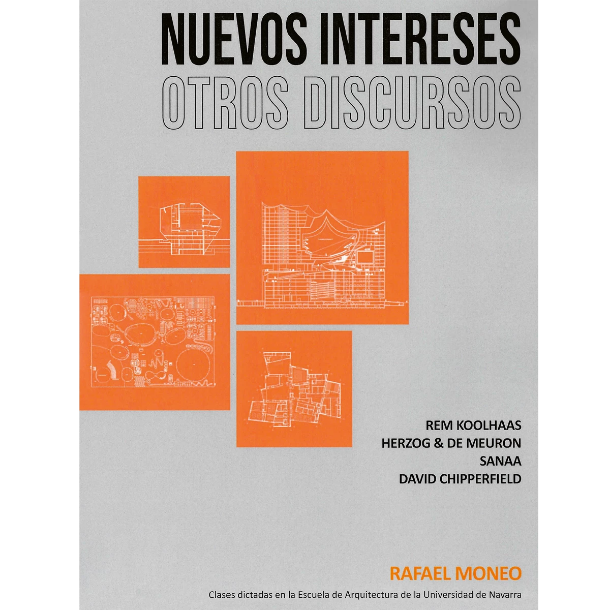 Con este doble propósito, Moneo sigue el método acuñado con talento en libros como Inquietud teórica y estrategia proyectual, fruto asimismo de unas clases y donde Moneo desplegó toda su capacidad crítica para desgranar el trabajo de ocho creadores, de James Stirling a Herzog & de Meuron, en lo que al cabo fue un intento de identificar las rupturas entre el periodo posmoderno y el del nuevo orden de finales de la década de 1980. En Nuevos intereses, otros discursos, Moneo acorta el campo de examen para centrarse sólo en cuatro arquitectos cuya trayectoria analiza con finura: si Koolhaas es el Le Corbusier contemporáneo que intenta desligarse de la modernidad canónica al tiempo que se declara exégeta privilegiado del tardocapitalismo, Herzog & de Meuron, ajenos a los grandes relatos, experimentan con la construcción primero y con los métodos de trabajo después, en tanto SANAA trabaja con una poética atmosférica que trasciende la espacialidad moderna, y Chipperfield resulta ser el epítome de la figura del arquitecto profesional, capaz de dar una respuesta de calidad en cada uno de los escenarios de la globalización.