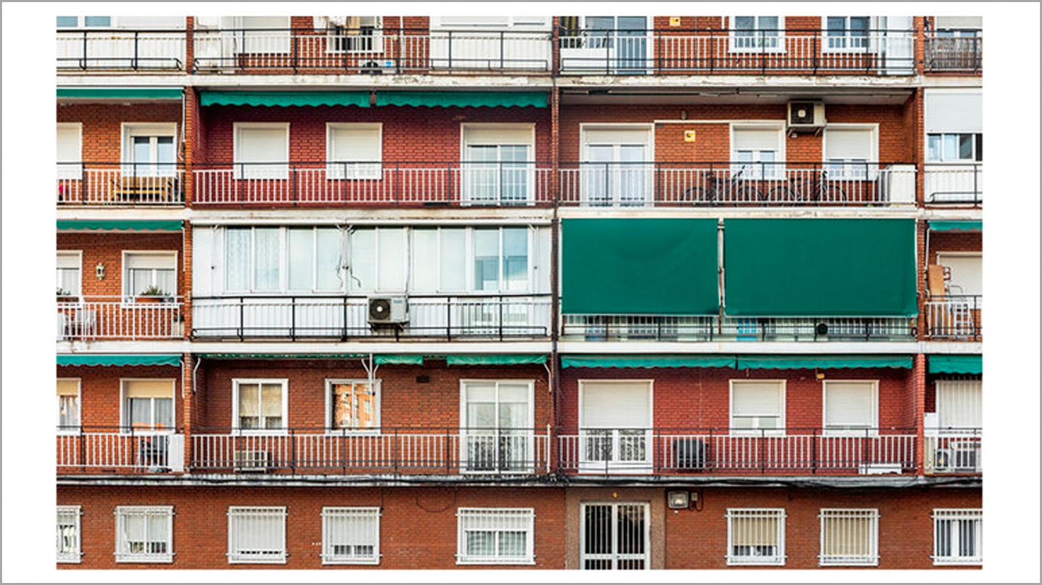 Y es probablemente en este ensalzamiento de lo ordinario donde subyace el éxito del diálogo entre Pablo Arboleda, a cargo de las concisas intervenciones literarias, y Kike Carbajal, responsable de las sugerentes réplicas visuales. La conversación trata sobre muchos temas, pero las arquitecturas anónimas de las periferias son el motivo central. Aquellas que, desprovistas de ornamentos o distintivos, solo han encontrado su seña de identidad en la repetición de lo corriente: el ladrillo rojo y el toldo verde. Así, en la sucesión de lugares desubicados cualquiera puede sentirse en casa e identificar la plaza de su infancia, el banco frente a su instituto o la calle de sus abuelos.