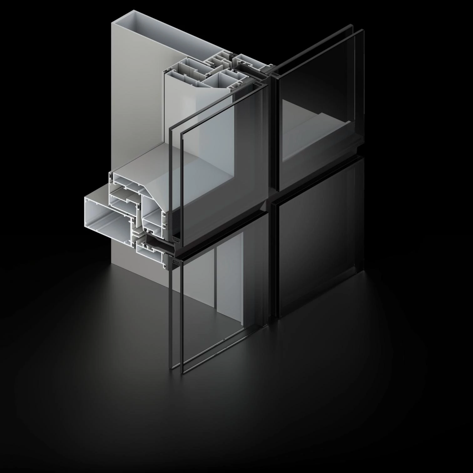 Con el objetivo de ofrecer soluciones que posibiliten la libertad creativa en el diseño de un muro cortina, una plataforma única con perfiles de aluminio de 50 mm y 60 mm de ancho permite desarrollar fachadas stick con vidrios de grandes dimensiones para aportar sensación de transparencia y minimizar el impacto visual de la perfilería. Cada hueco puede alojar paneles de hasta 850 Kg llegando a una superficie de más de 12 metros cuadrados, en función del tipo de vidrio utilizado.