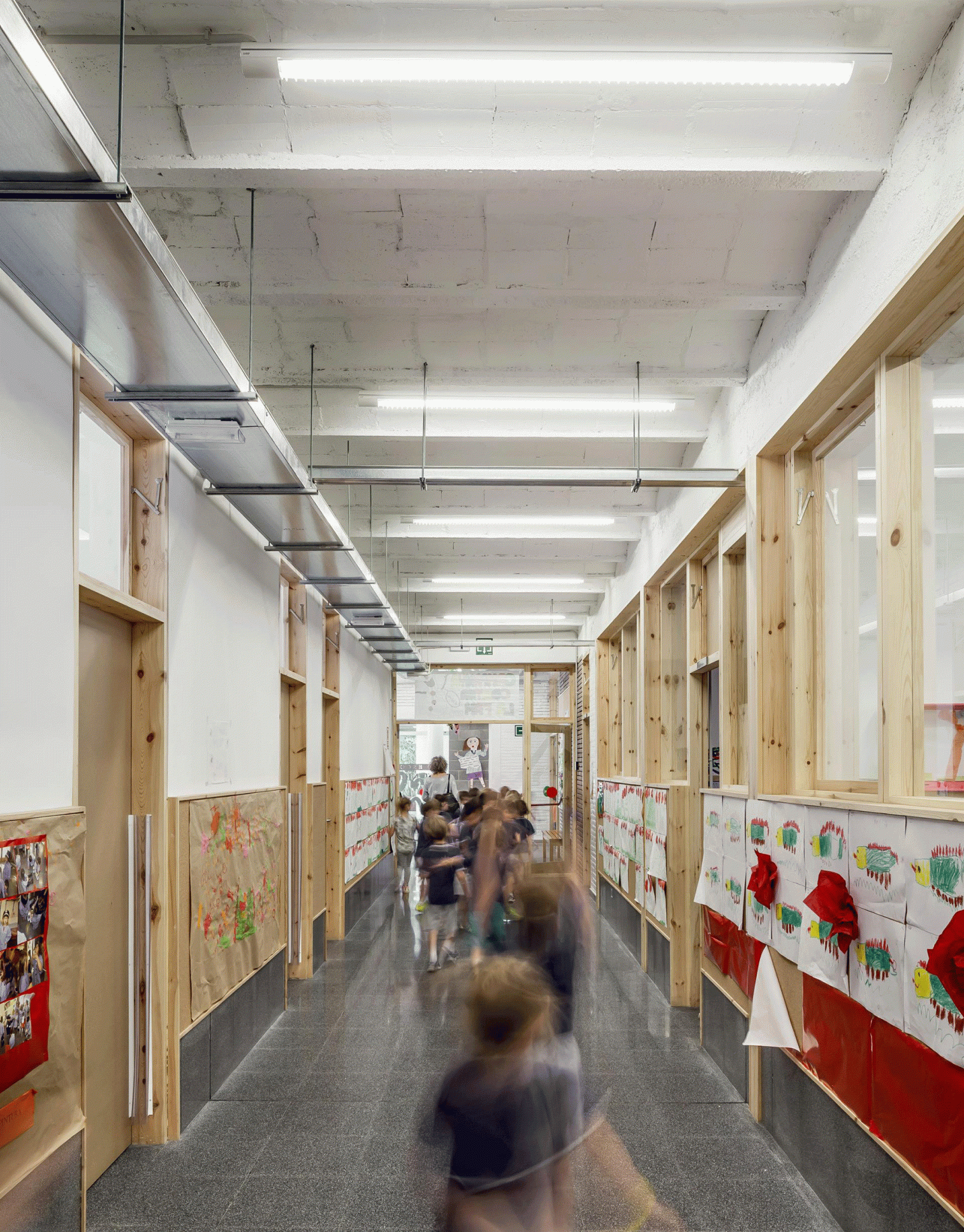 Como ejemplo encontramos el caso de la iluminación de la Guardería Municipal La Morera, que alterna soluciones de iluminación indirecta en áreas de lactantes, con otras zonas con iluminación directa a través de las luminarias.